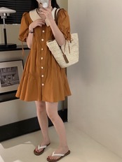 サマースタンダードカラープリーツルーズスリーブAラインドレス レトロ 夏物 7/20 mi4628672137430