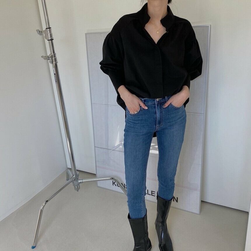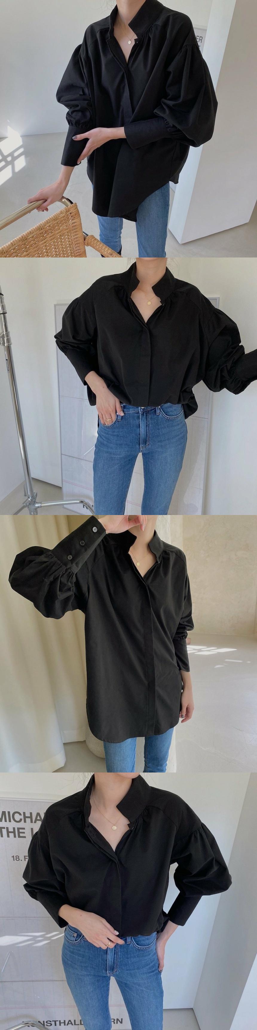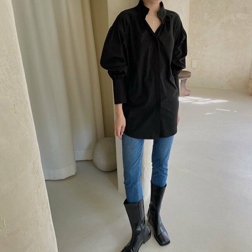 オータムスタンダードカラーダークボタンルーズカジュアルソリッド スリーブシャツ トップス レディース ランタンスリーブ レトロ 秋物 ソリッドカラー 7/20 mi4697067915879