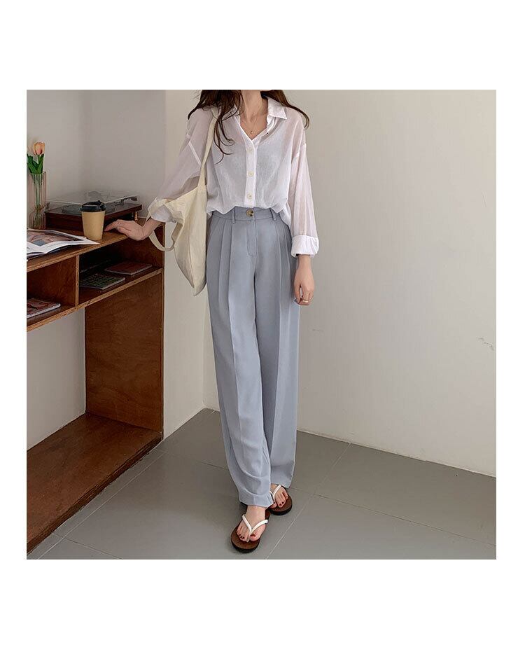 ハイウェストウェストワイドレッグパンツ オータムルーズカジュアル 秋物 ワイドパンツ 7/20 mi4680564125746
