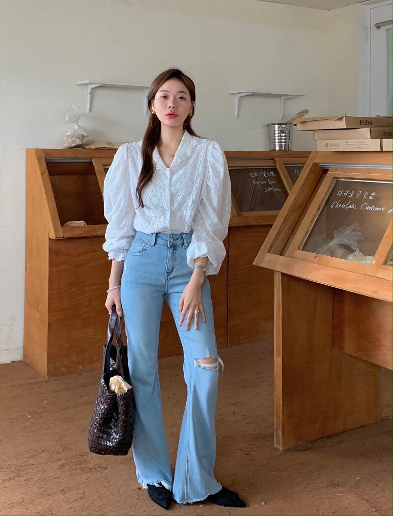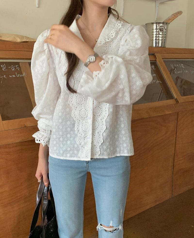 オータムFlowerデザイン ルーズスリーブシャツ 秋物 フラワーデザイン 7/20 mi4668127745977