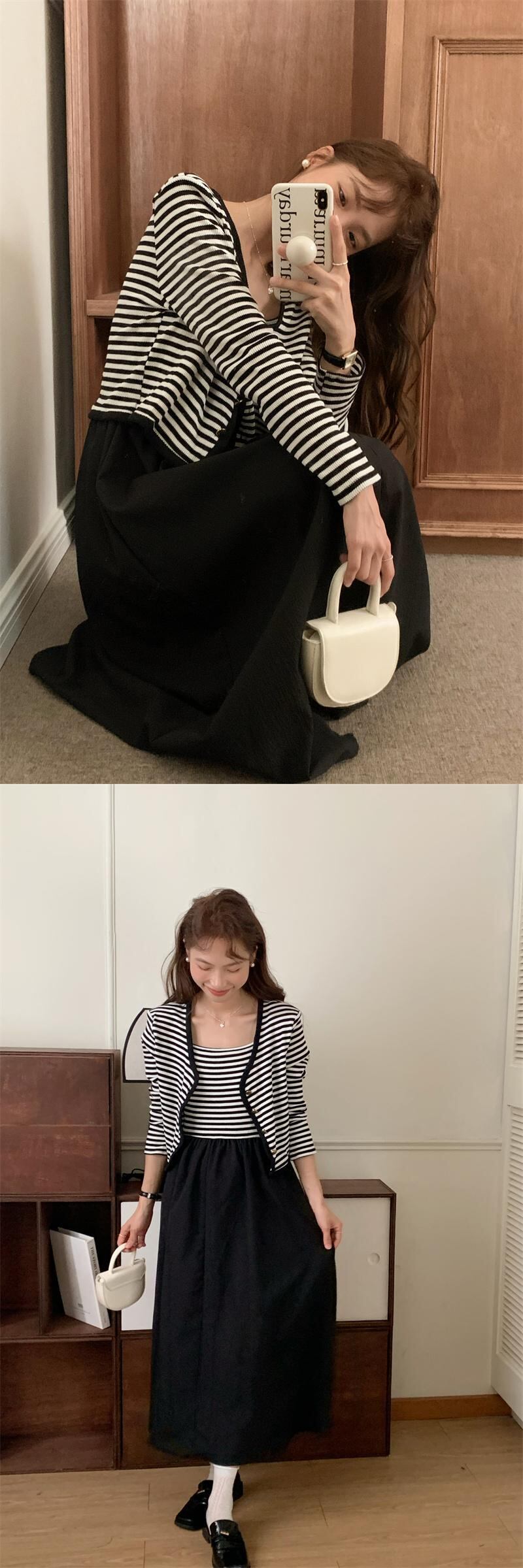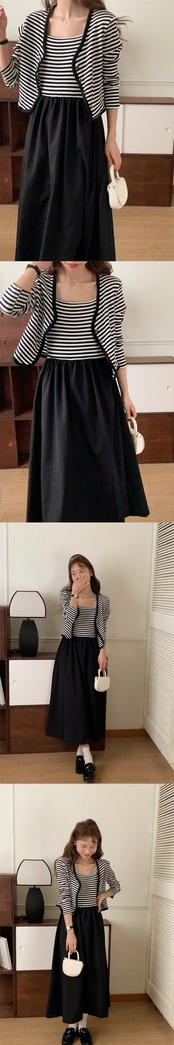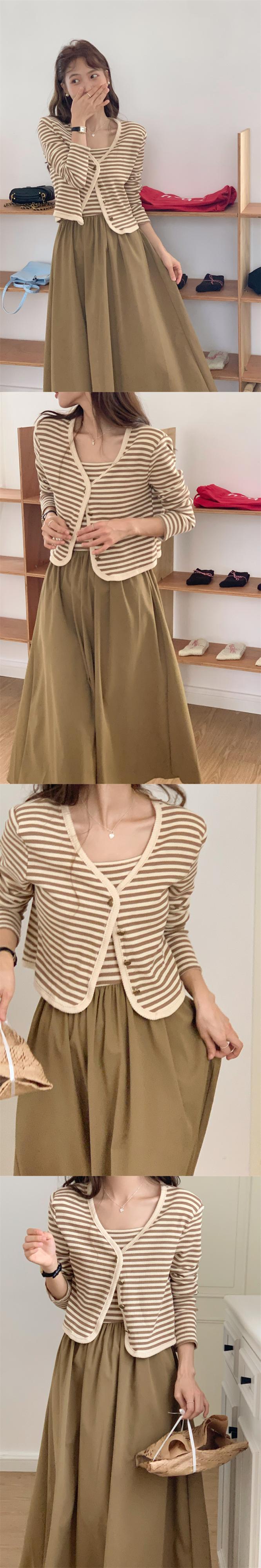 スタンダードスタイルVネックストライプニットカーディガンドレス ロング レトロ スクウェア ステッチ 7/20 mi467143771772