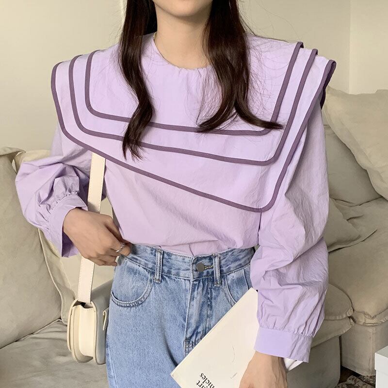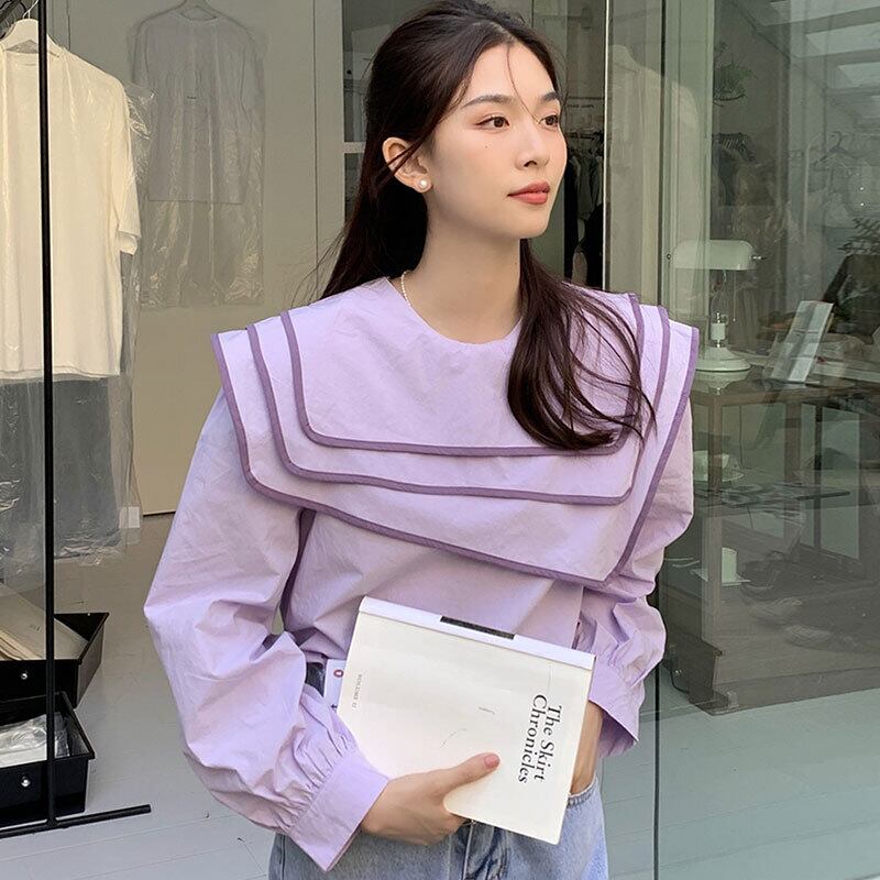 オータムネイビーカラールーズシャツ レディース ロング 秋物 パープル 7/20 mi4681921930845