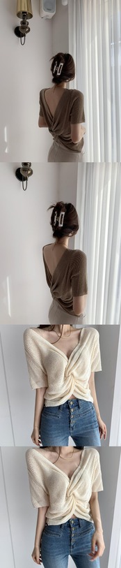 サマーVネックバッククロスプルオーバー セーター レッド 夏物 7/20 mi4690587608983
