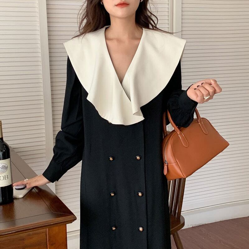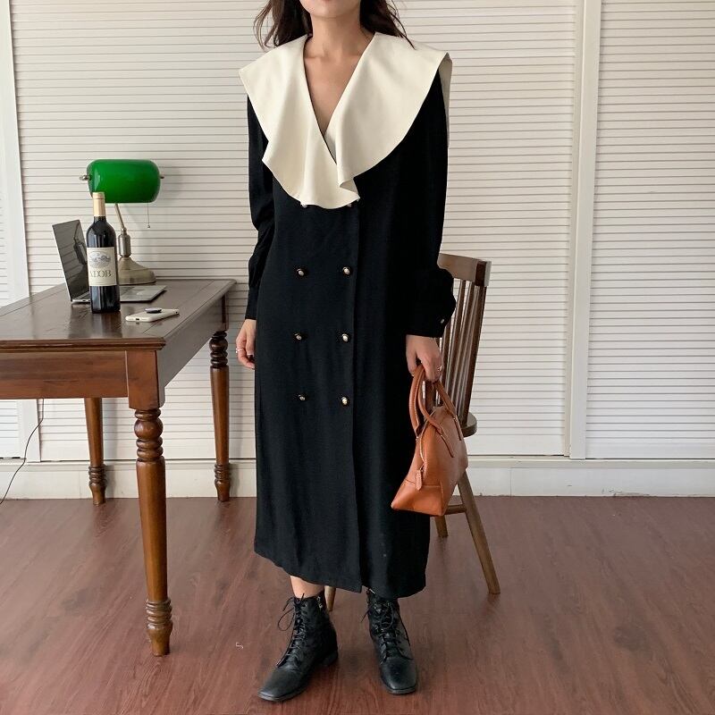 オータムカラーダブルブレストウェストドレス ロング エレガント 秋物 7/20 mi4692854108692