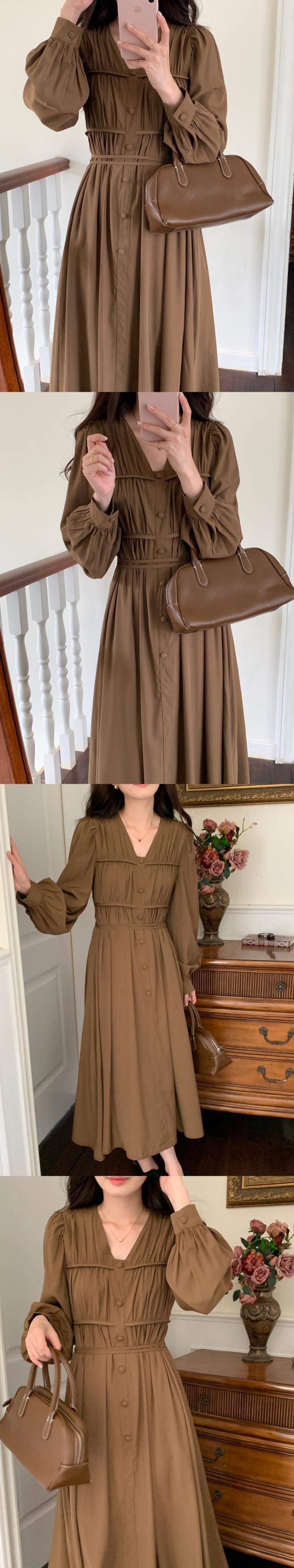 オータムスタンダードVネックウェストロングドレス スカート レディース レトロ 秋物 7/20 mi4630869184277