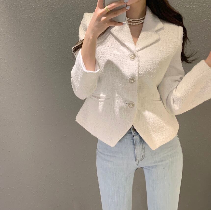 オータムスタンダードパールポケットツィードジャケット ロング レトロ 秋物 真珠 7/20 mi4665095549769