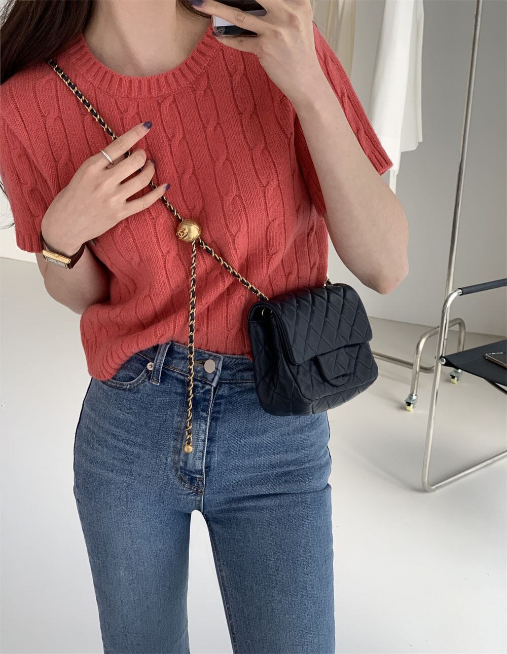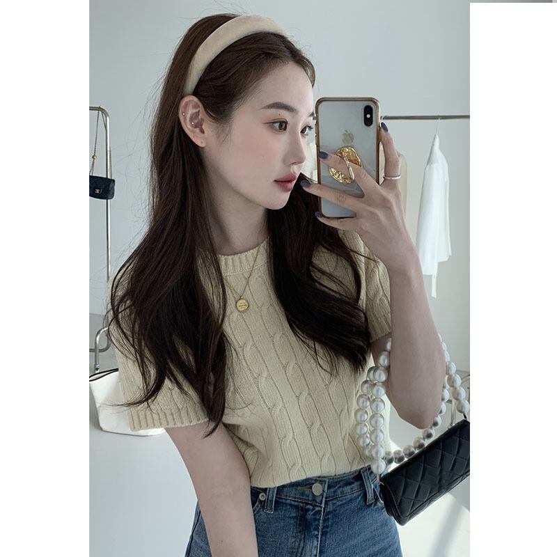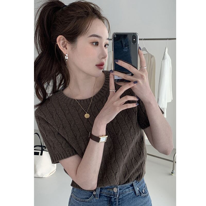 サマースタイルラウンドネックパターンルーズプルオーバー ニットTシャツ レディース 夏物 Oネック 7/20 mi4665459341233