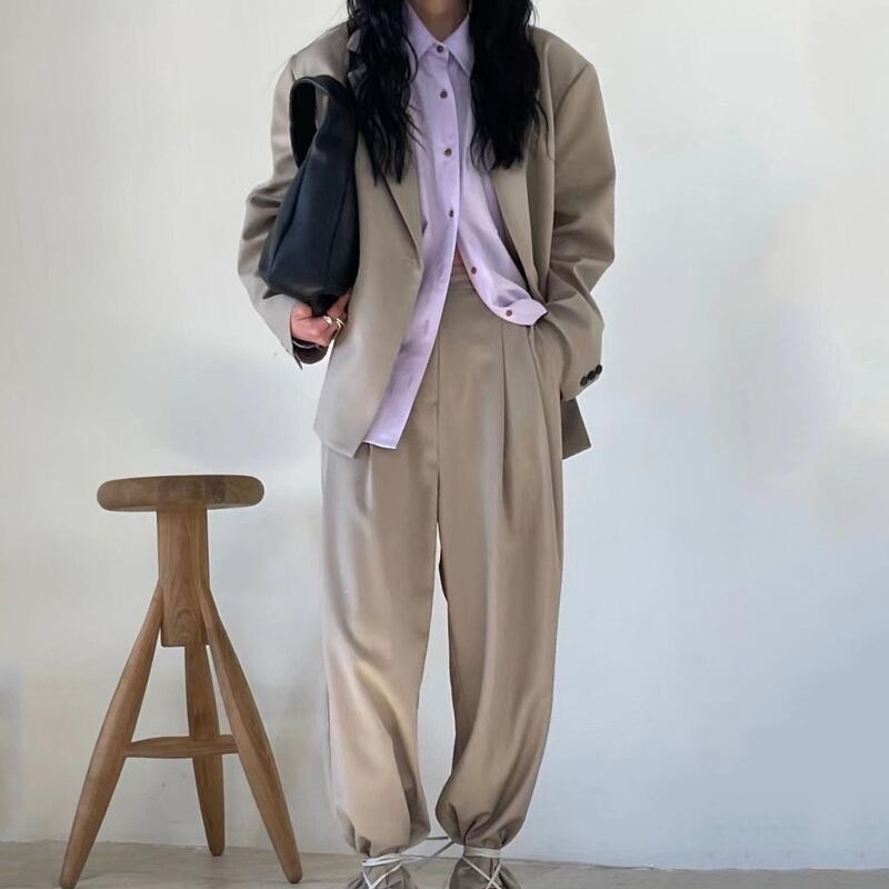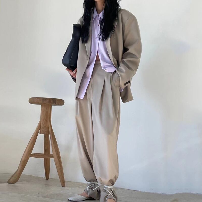 オータムスタンダードボタンジャケット ハイウェストウェストルーズワイドレッグ ロング レトロ 秋物 ワイドパンツ 7/20 mi4669120846802
