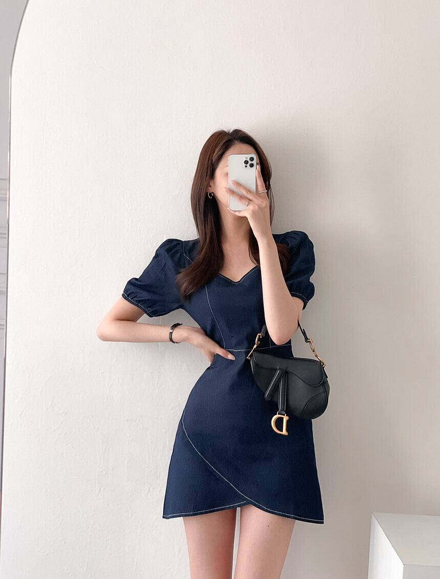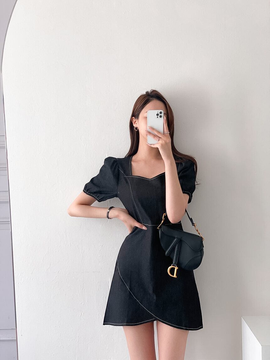 サマースタンダードカラーウェスト薄手ラインドレス レトロ 夏物 スクウェア 7/20 mi4669299410499