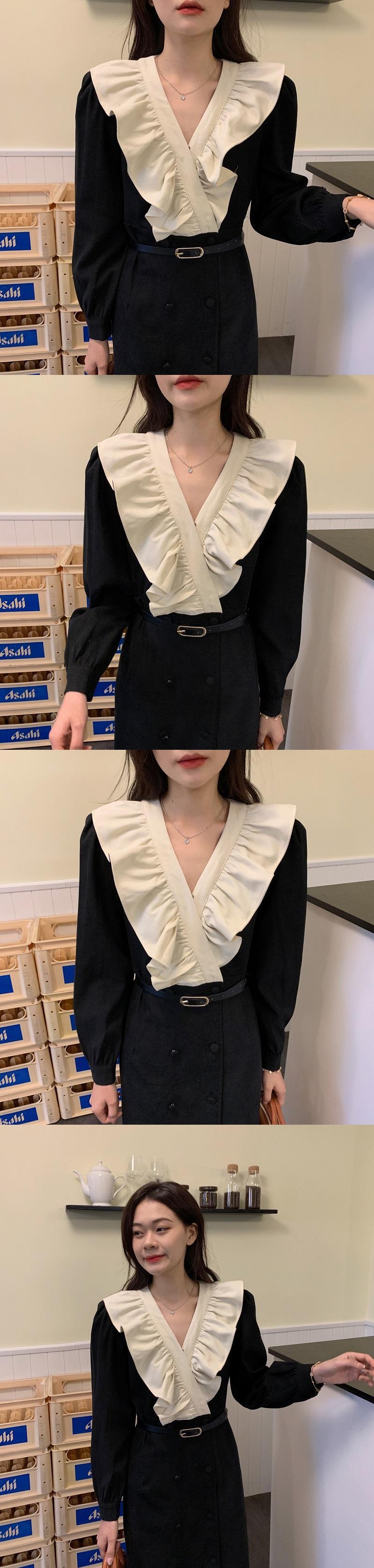 オータムVネックカラーダブルブレストスリーブドレス 秋物 ステッチ 7/20 mi4658431489818