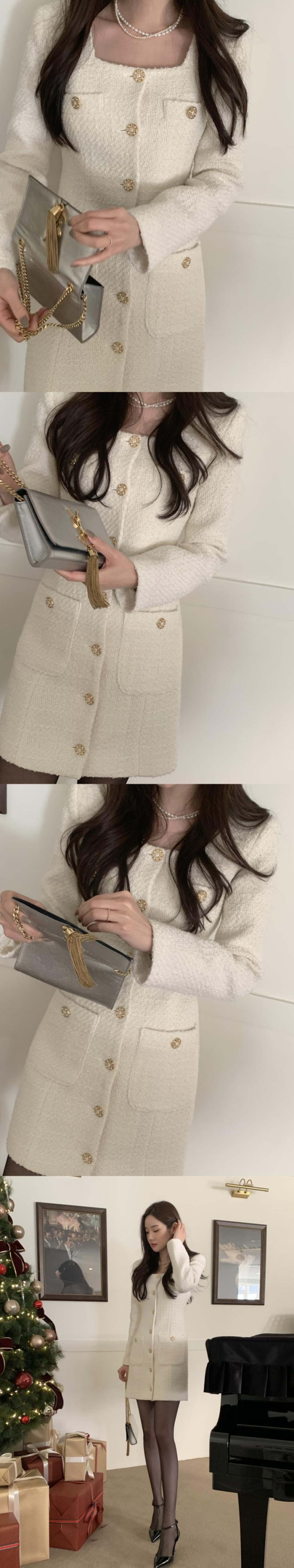 スタイルカラーメタルポケットツィードドレス ロング スクウェア 7/20 mi4612192036256