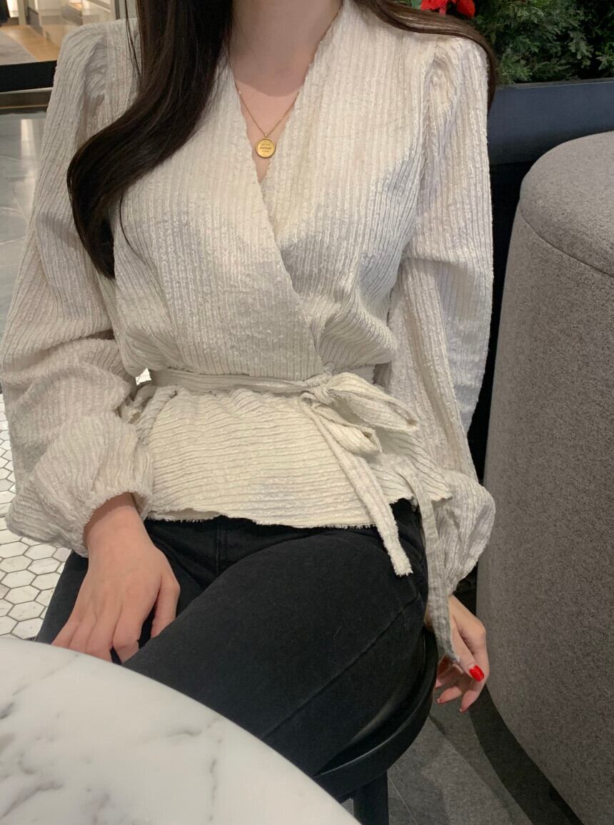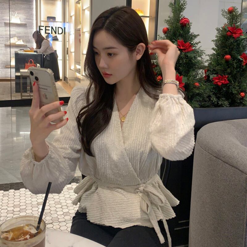 オータムクロスVネックウェストスリムシャツ トップス レディース ロング レッド 秋物 7/20 mi4657234091058