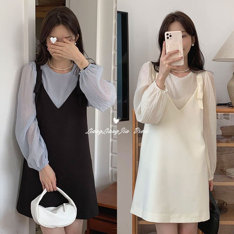 オータムシャツ Vネックリボンドレス 秋物 7/20 mi4669055931525