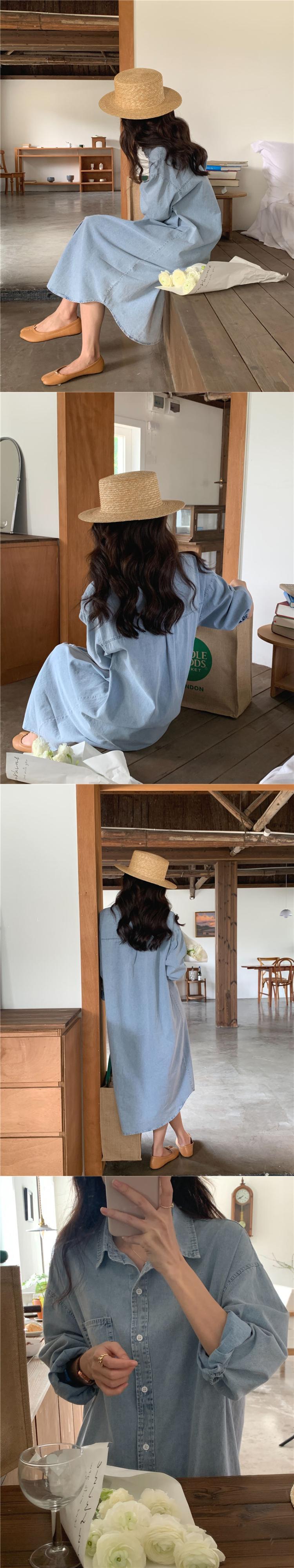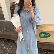 オータムスタンダードスタイルルーズブルーロングドレス スカート レトロ 秋物 7/20 mi4697214705137