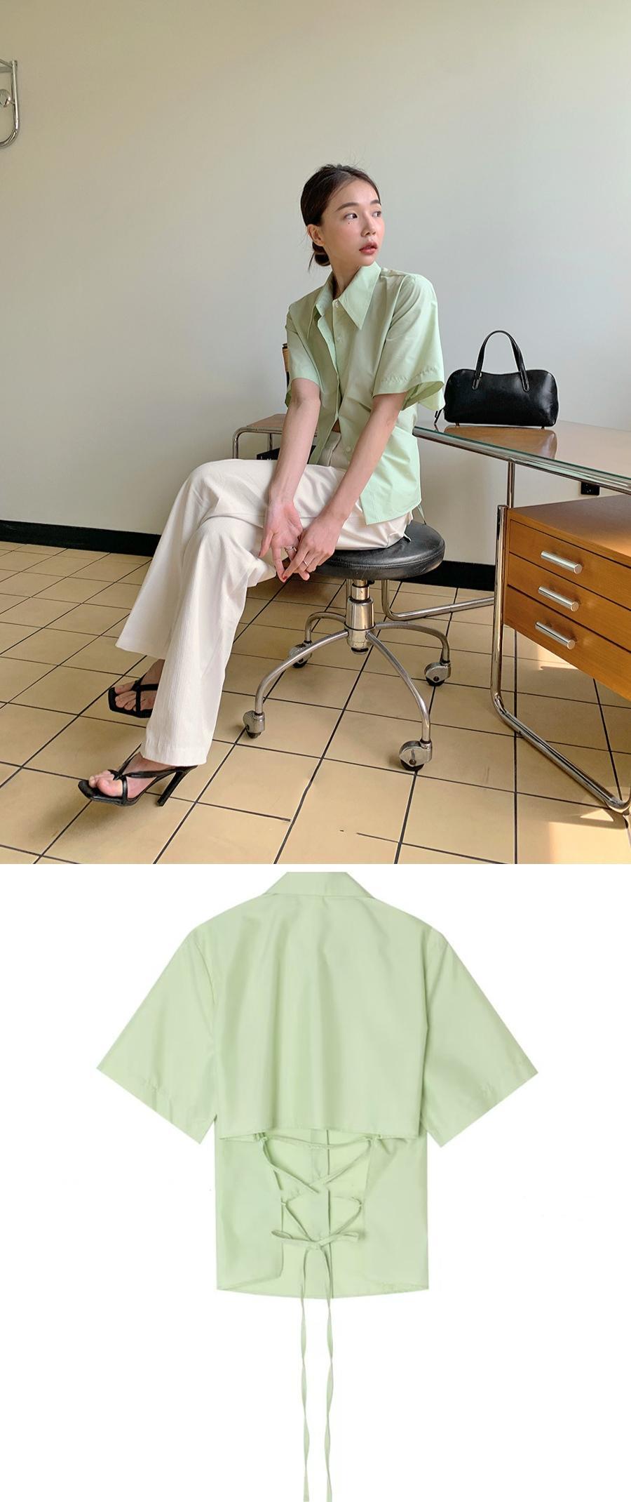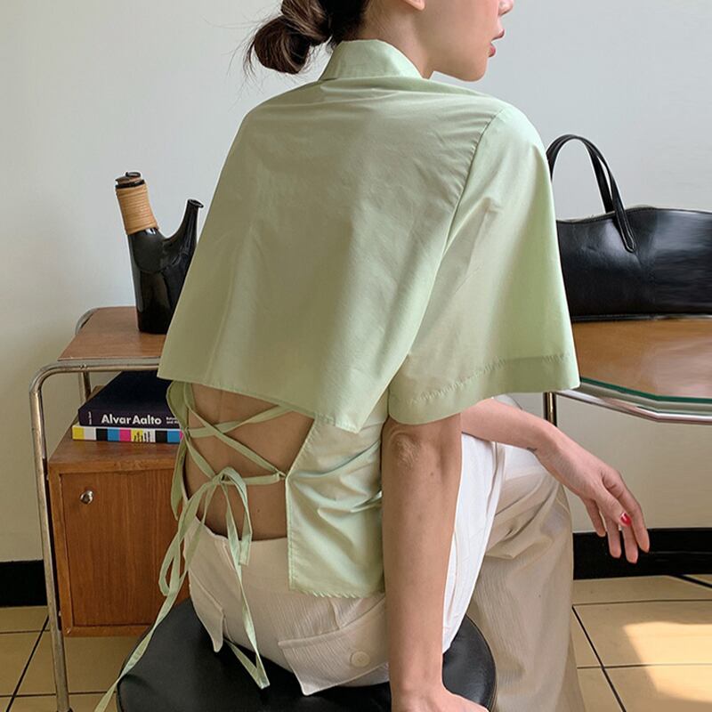 サマーバックレースクロスルーズシャツ トップス レディース 夏物 7/20 mi4666978883248