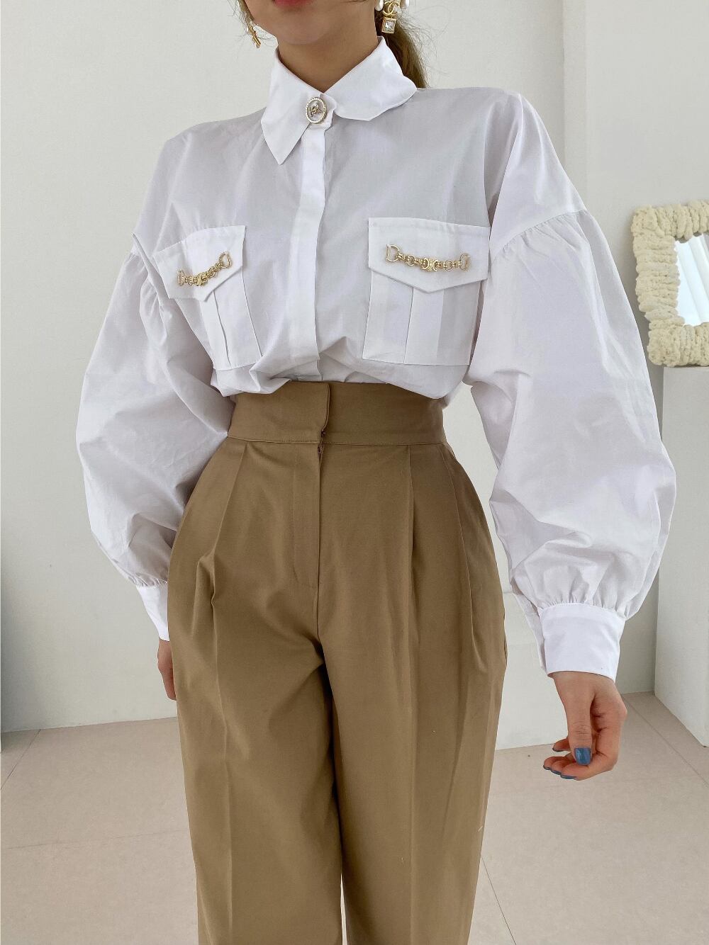 スプリングチェーン ダブルポケットルーズスリーブシャツ トップス 春物 7/20 mi4622122922961