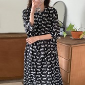 オータムパターンプリントルーズカジュアルドレス レディース ロング 秋物 7/20 mi4673209512895