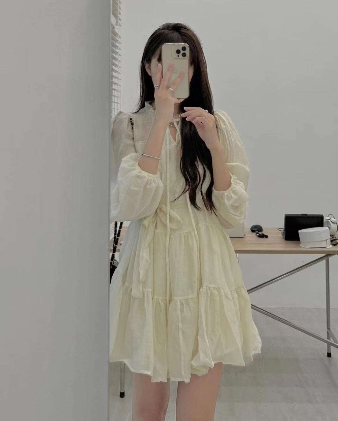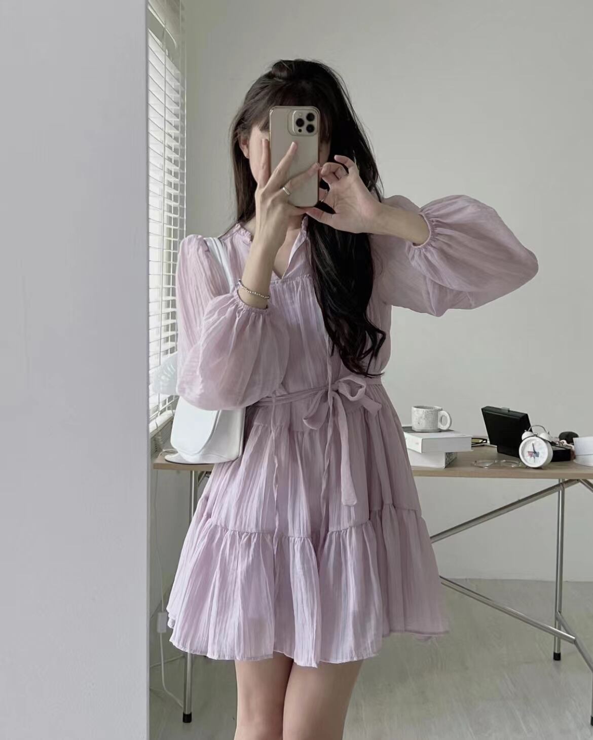 オータムVネックプリーツドレス ロング 秋物 7/20 mi4649661201490