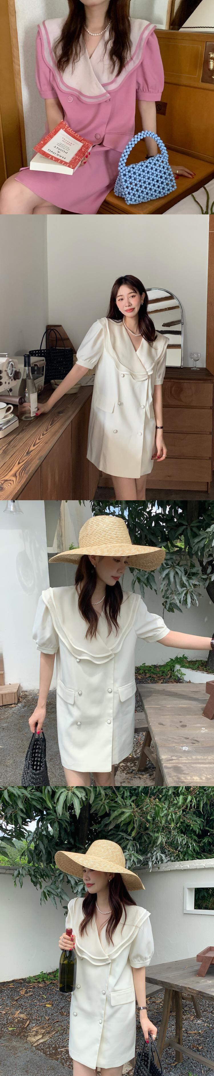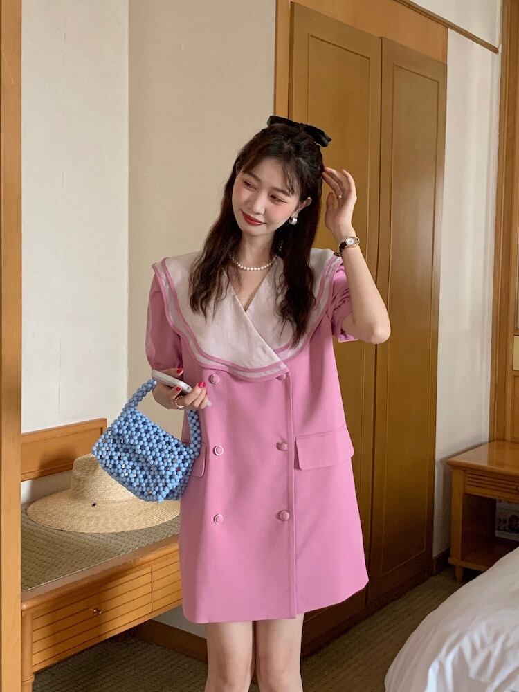 サマーダブルブレストルーズスリーブドレス 夏物 7/20 mi4668553797978