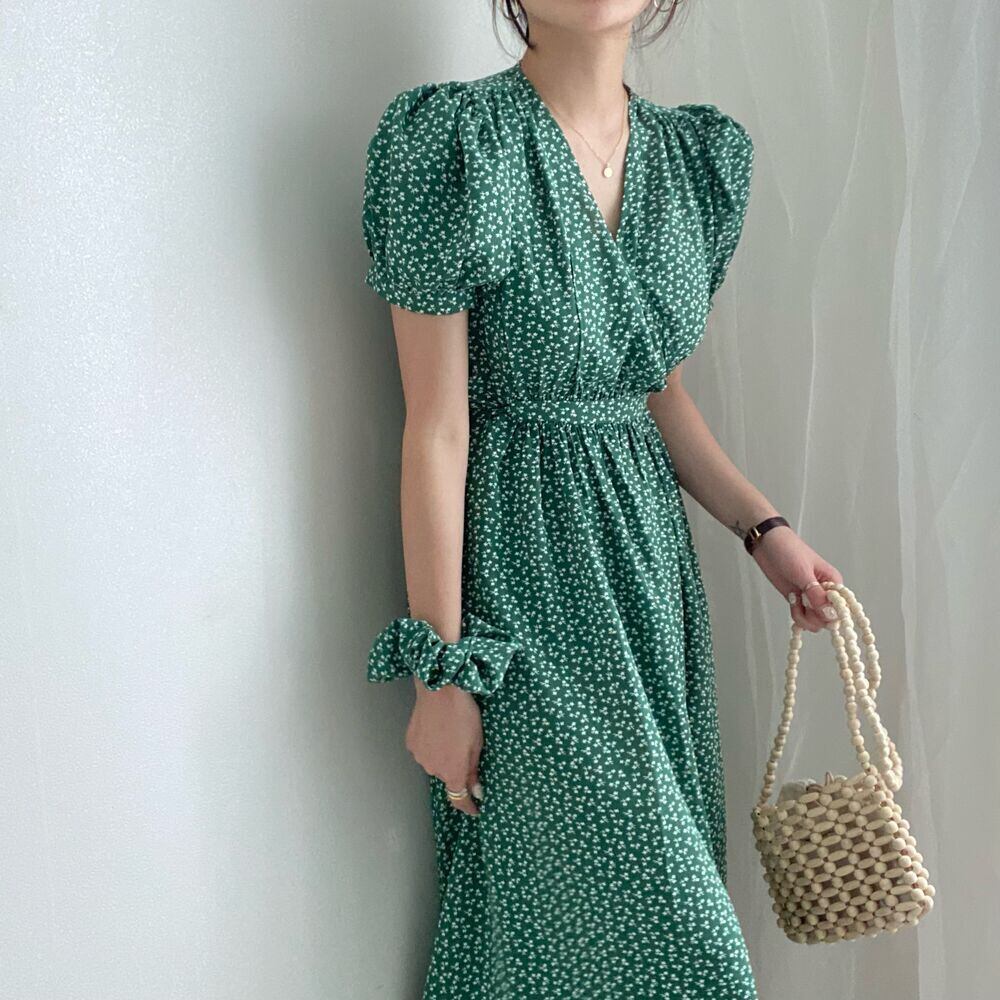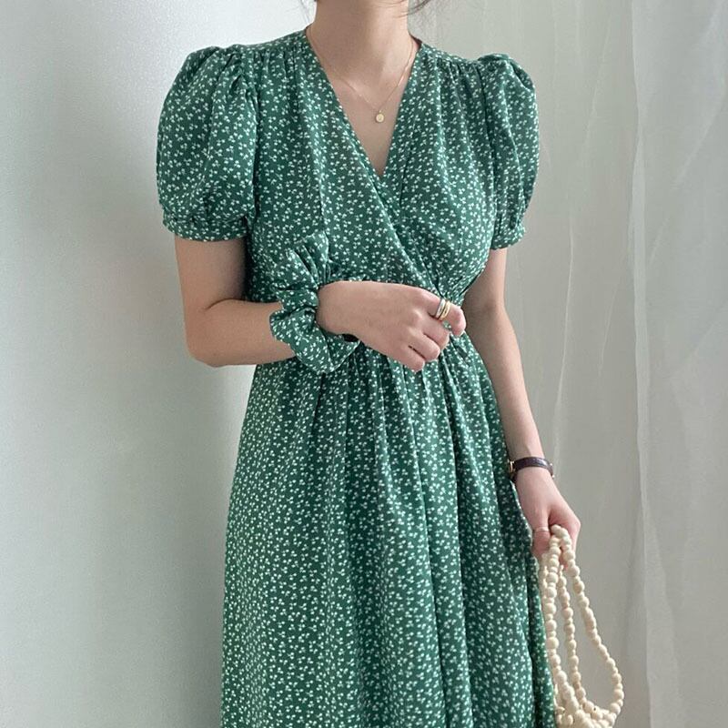 サマーVネックフローラルレースウェストスリーブロングドレス レディース エレガント 夏物 花柄 7/20 mi4613717762419