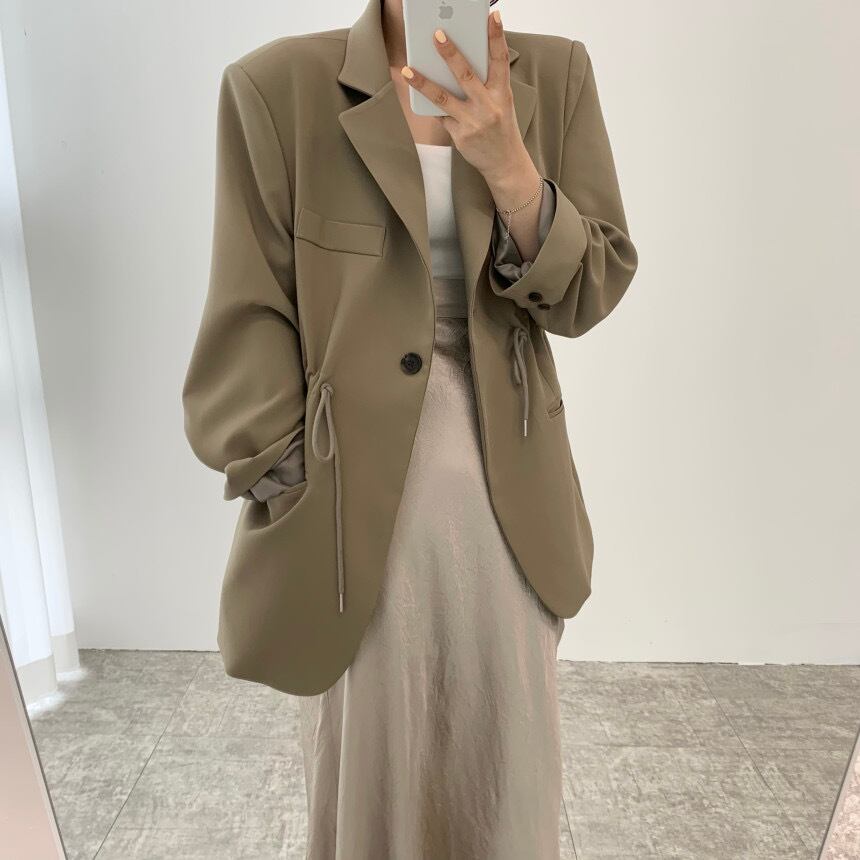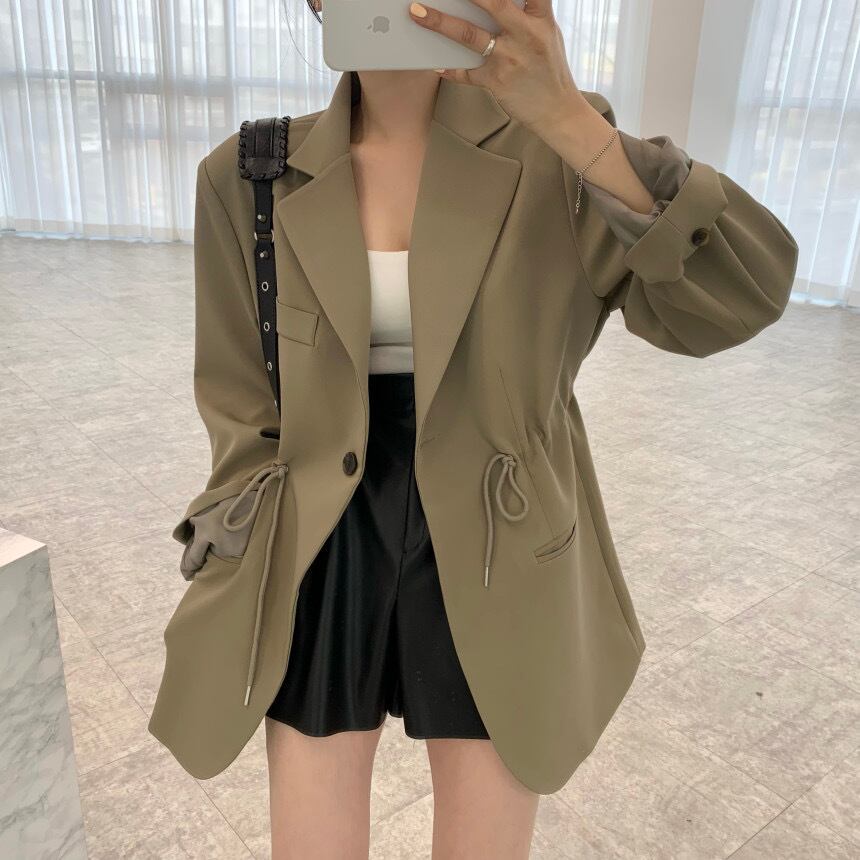 オータムスタンダードボタンギャザーウェストジャケット レディース ロング レトロ 秋物 7/20 mi4668082481216