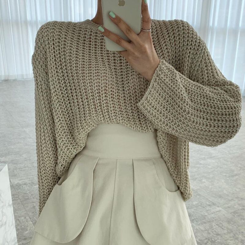 オータムスタイルラウンドネックルーズカジュアルソリッド カラーセーター トップス ロング 秋物 Oネック ソリッドカラー 7/20 mi466179327519