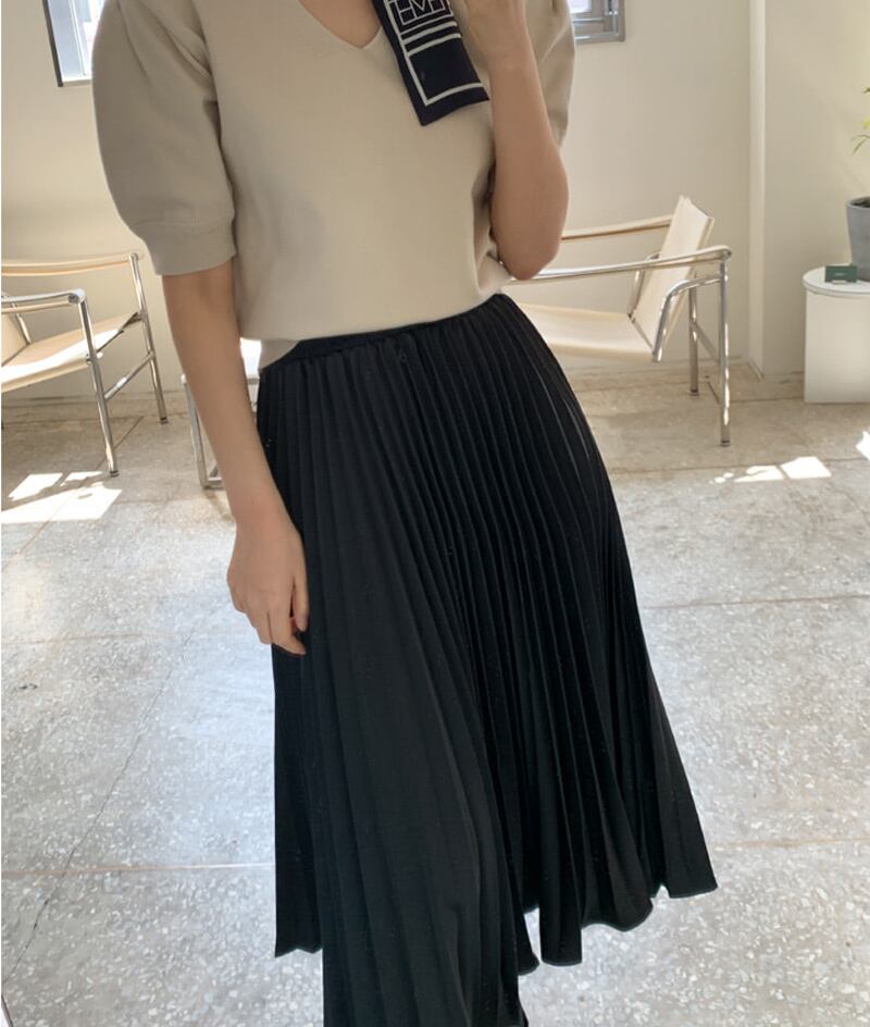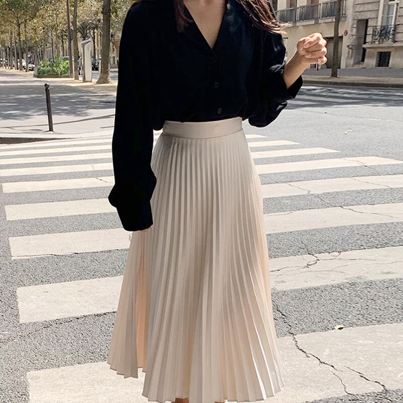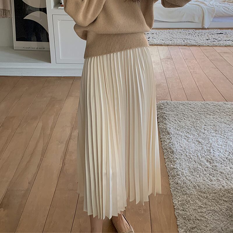 オータムストレッチハイウェストウェストロングソリッド カラーAラインプリーツスカート エラスティック 伸縮 秋物 ソリッドカラー 7/20 mi4678465661091