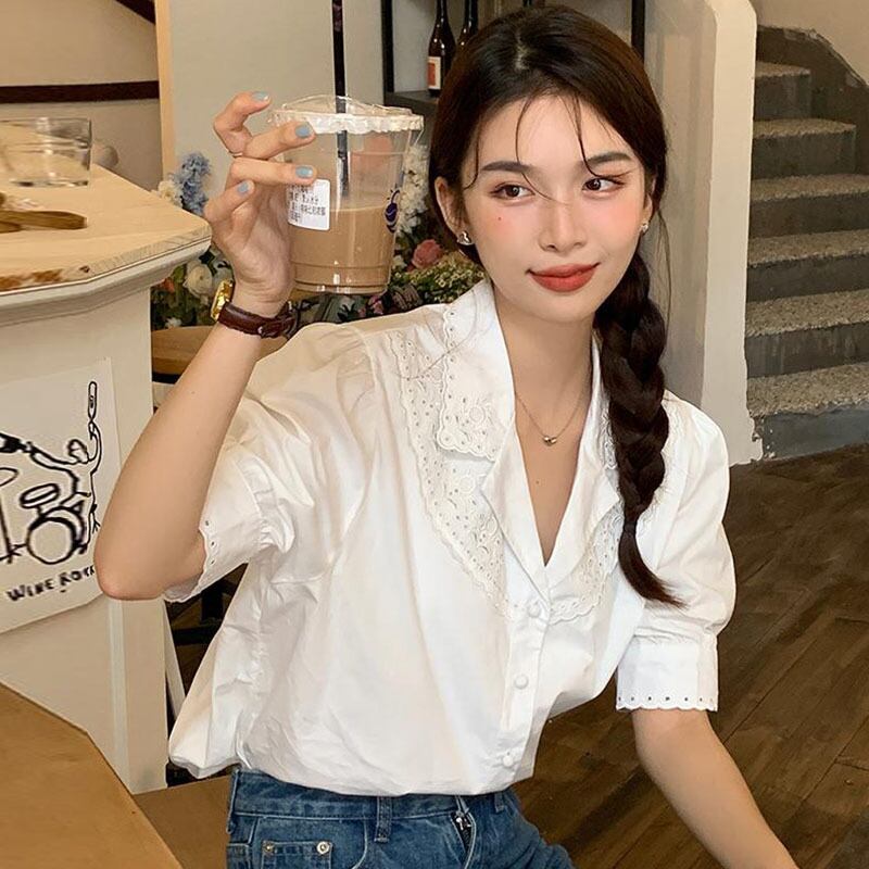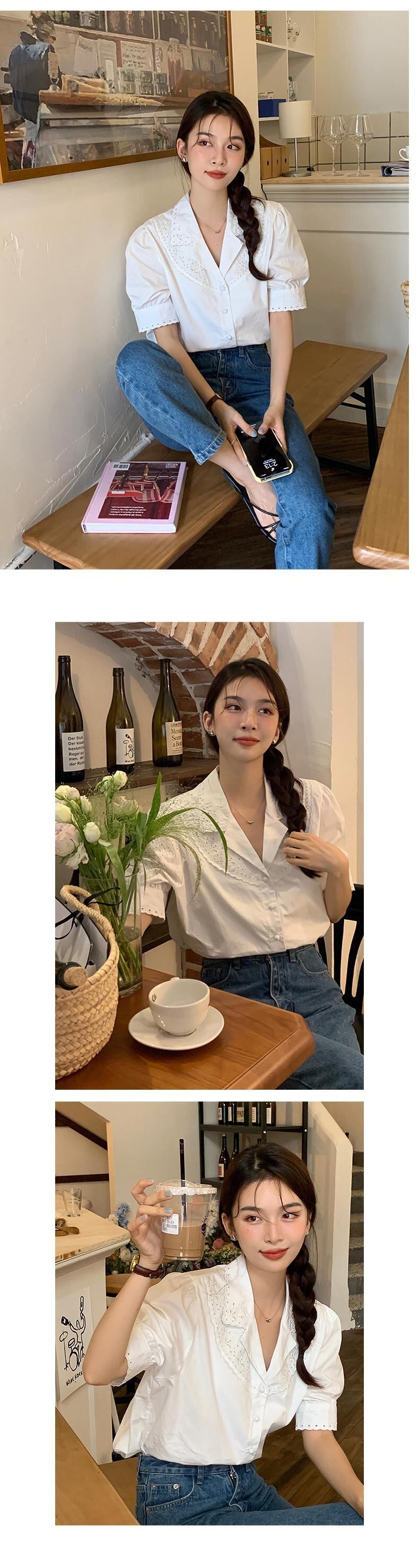 サマーレースジャカードルーズスリーブシャツ 夏物 ステッチ 7/20 mi4639845469685