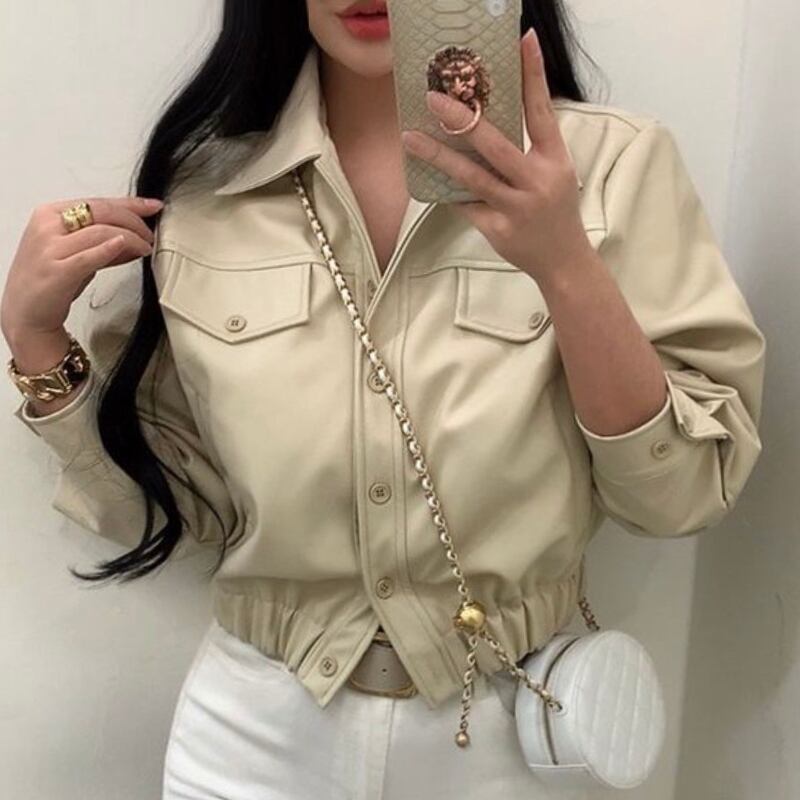 オータムスタイルルーズレザーショートジャケット レディース ロング 秋物 7/20 mi4696782062796