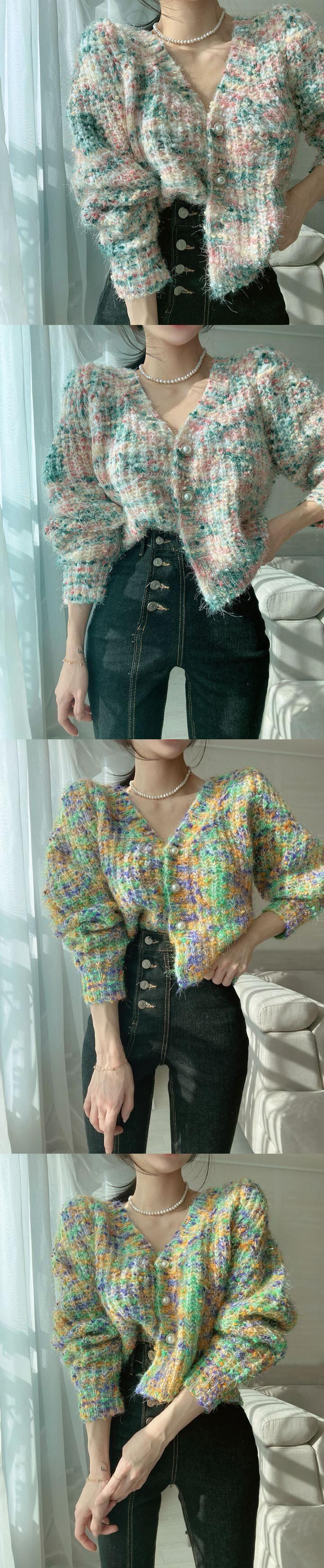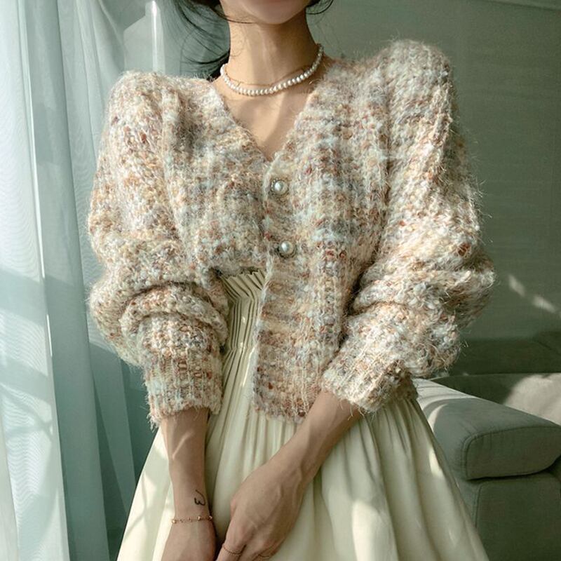 オータムウィンターVネックパールボタンカラーニットセーター レディース ロング 大人ガーリー スウィート キュート カジュアル 秋物 冬物 真珠 7/20 mi4677397588526