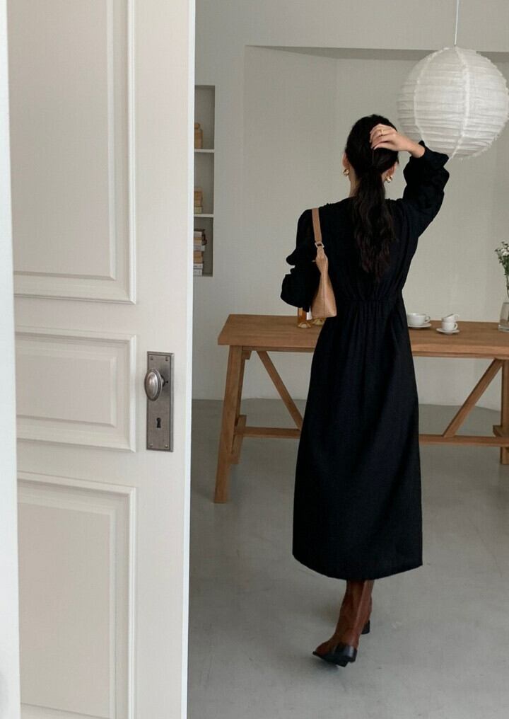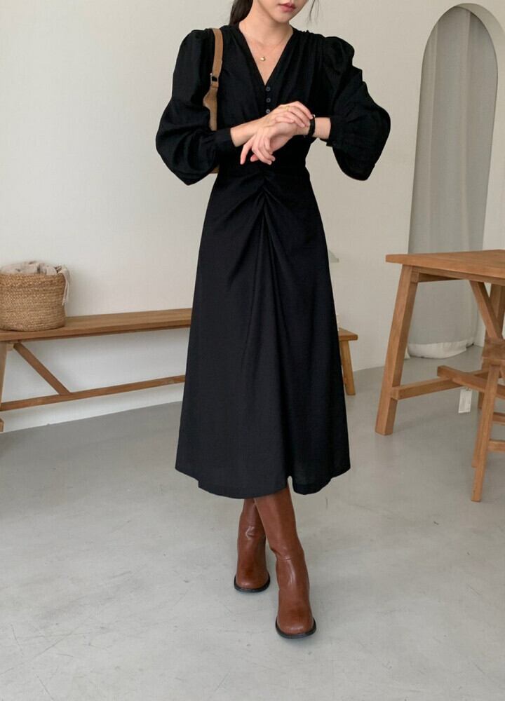 オータムVネックプリーツウェストスリーブドレス ロングスカート レディース エレガント 秋物 7/20 mi4613368702819