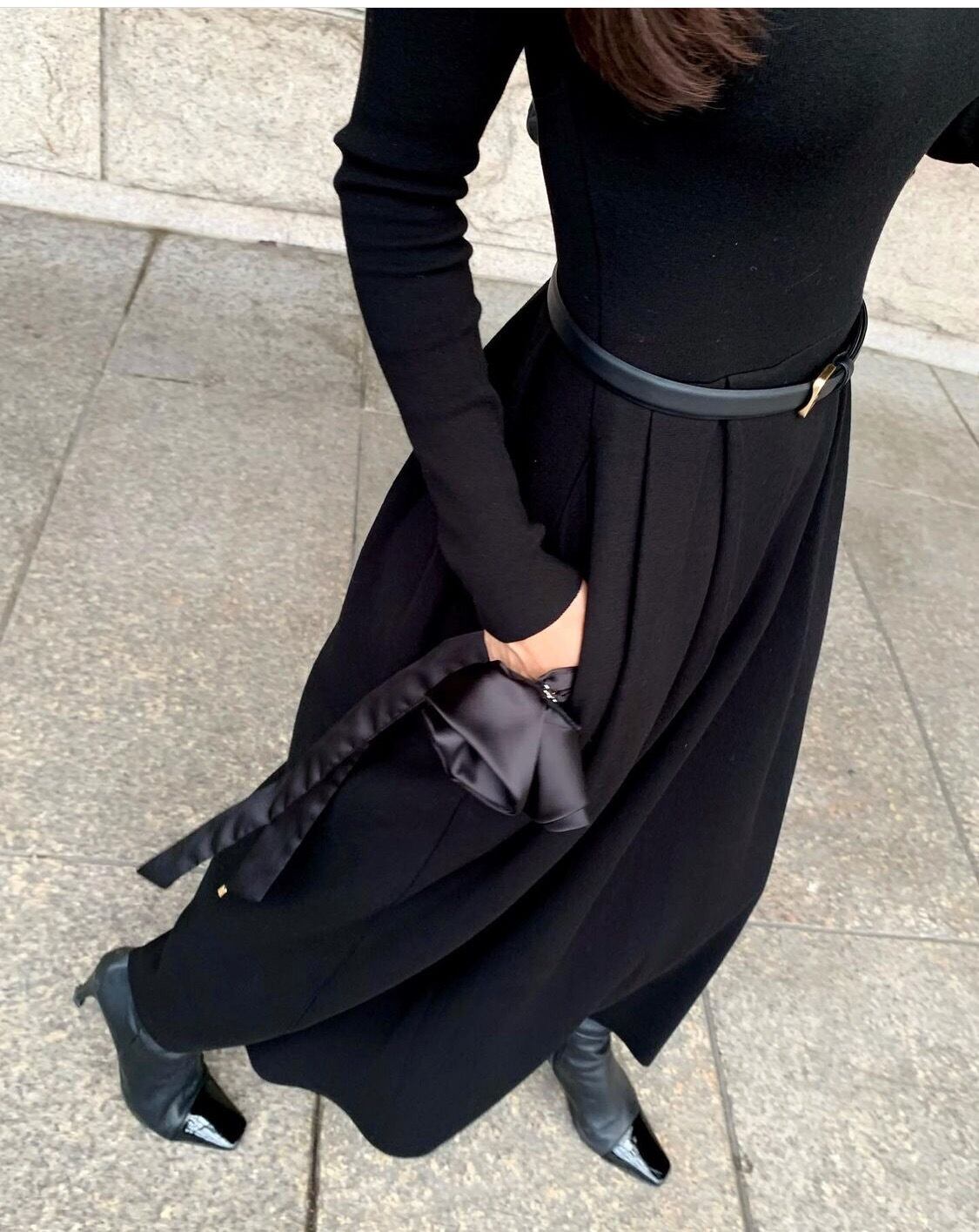 オータムスタンダードカラースリムフィットロングドレス ベルト レディース レトロ 秋物 ハーネス スクウェア 7/20 mi4655077467005