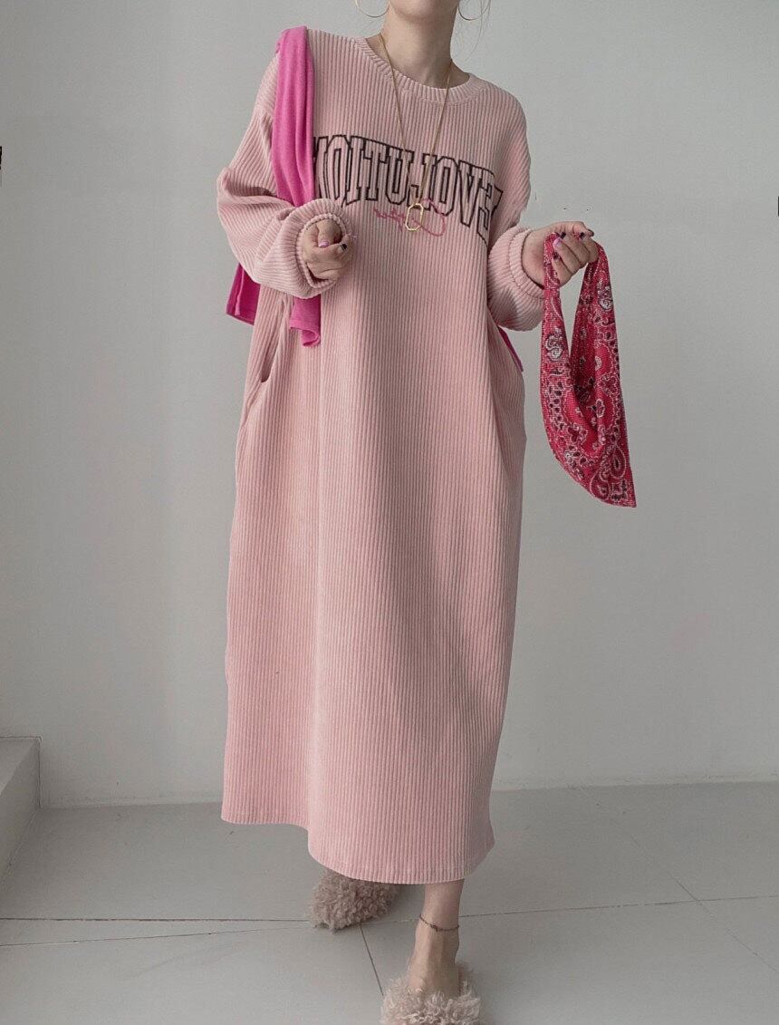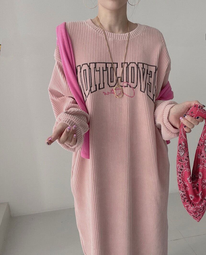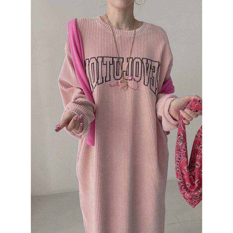 オータムラウンドネックプリントルーズカジュアルロングコーデュロイドレス スカート 秋物 Oネック 7/20 mi4622834585029