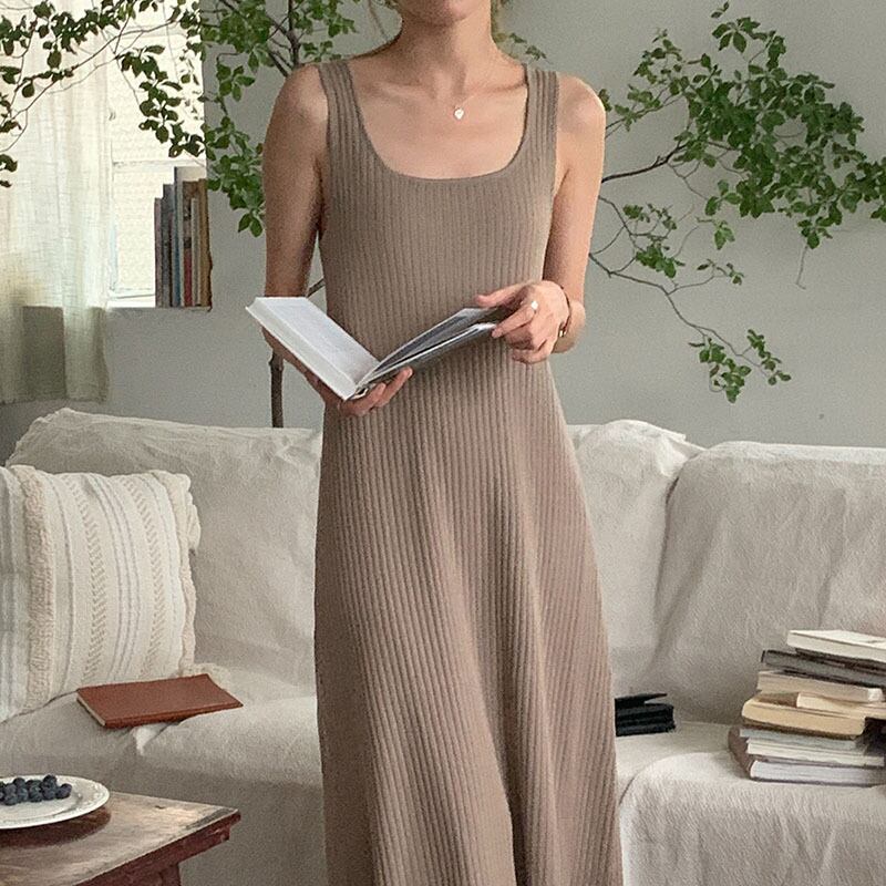 カラーストライプ薄手ロングニットドレス レディース スクウェア 7/20 mi4677049719022