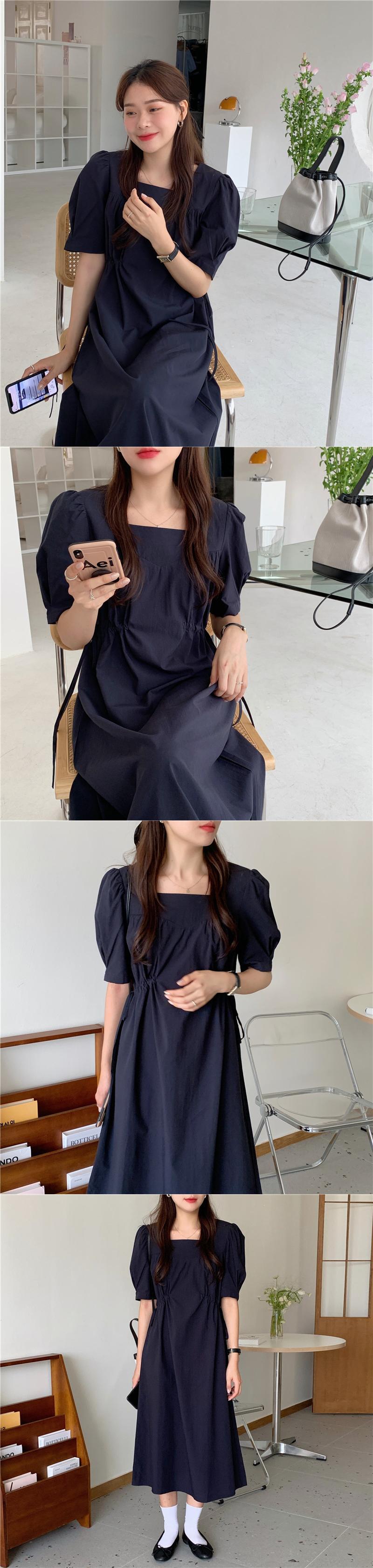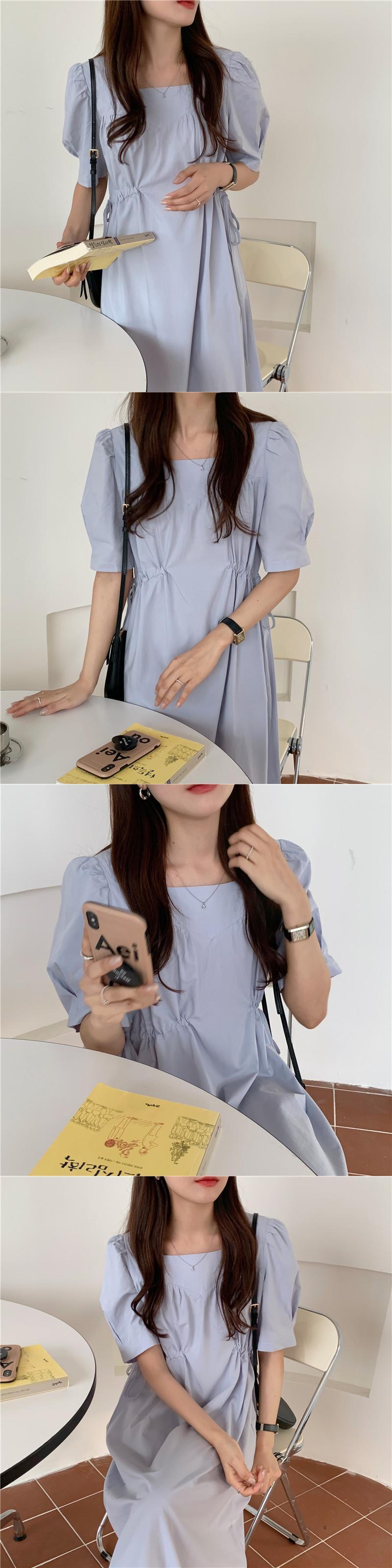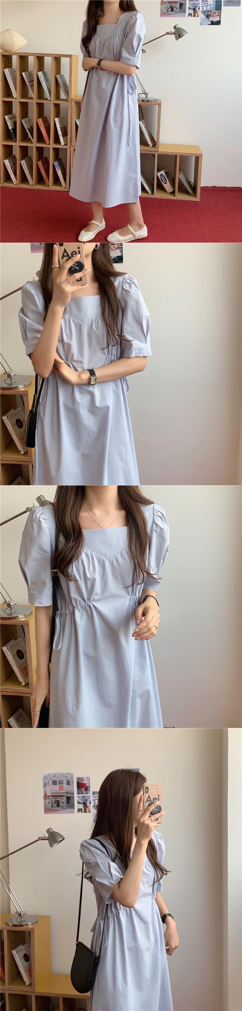 サマーサイドギャザースリーブドレス ロングスカート 夏物 スクウェア 7/20 mi4675058308288