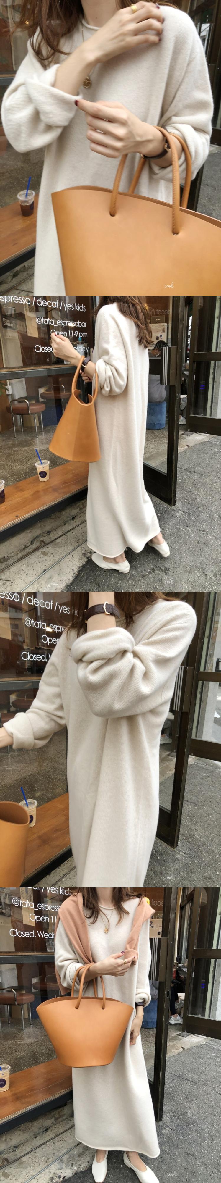 オータムラウンドネックルーズカジュアルロングニットドレス レディース 秋物 Oネック 7/20 mi4653663235370