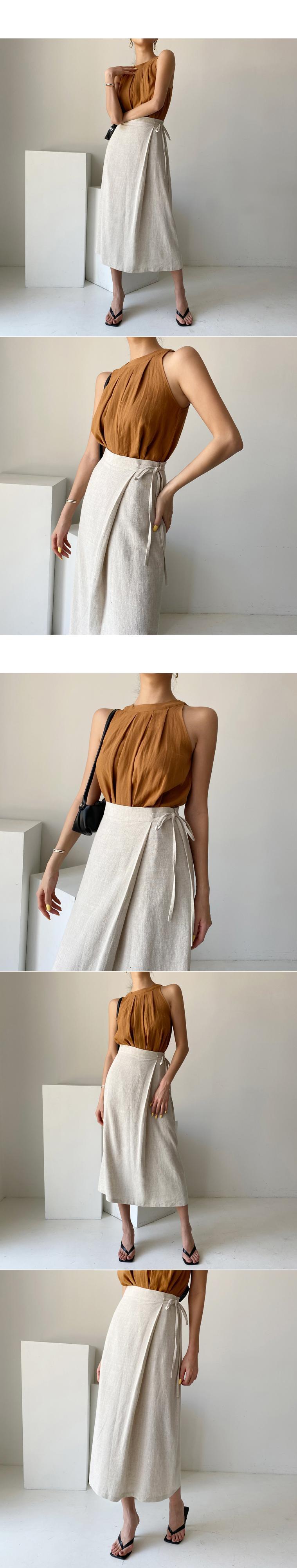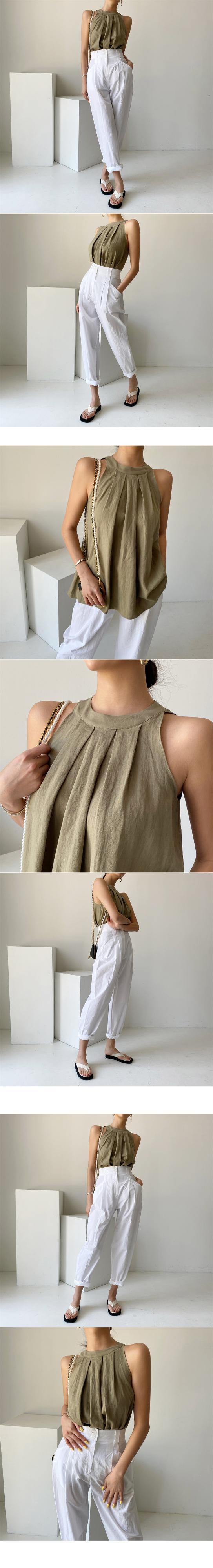 サマーラウンドネックプリーツノースリーブ コットン 夏物 Oネック 7/20 mi4647682820569