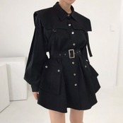 オータムスタンダードメタルシャツ ドレス ロング レトロ 秋物 ポケット多め マルチポケット 7/20 mi4633127610810