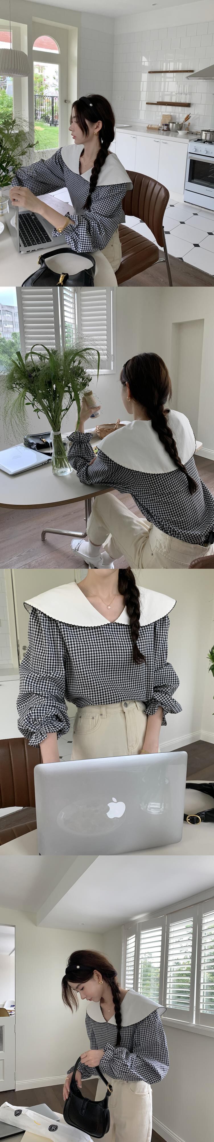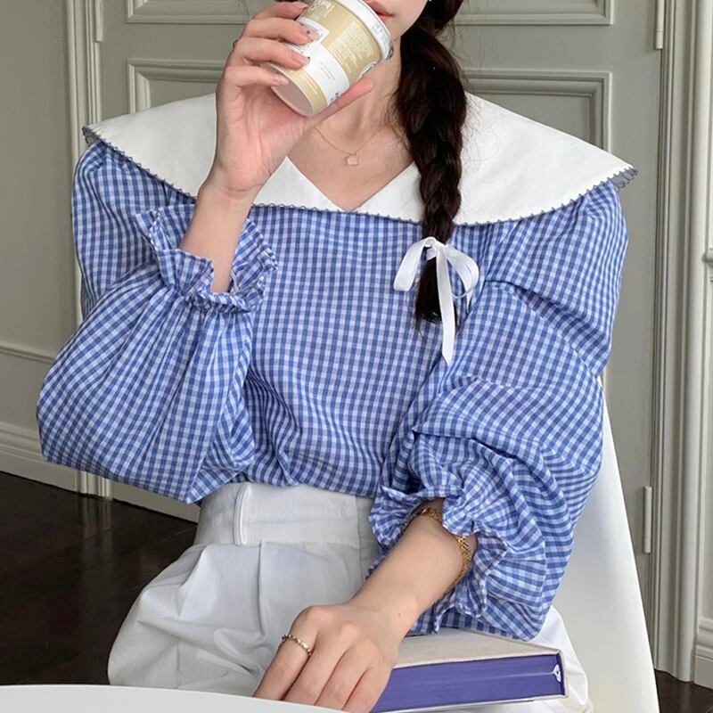 オータムスタンダードカラールーズスリーブ格子柄シャツ トップス レトロ 秋物 7/20 mi4638363573203