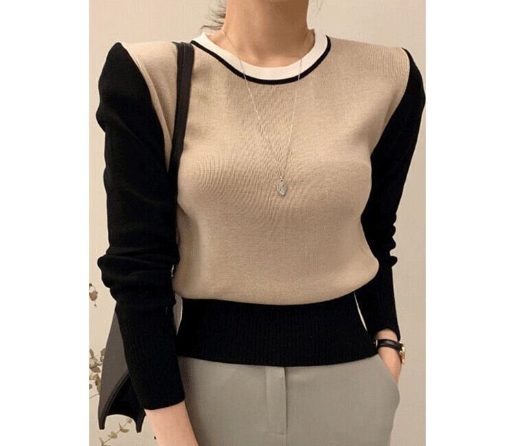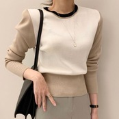 オータムスタンダードラウンドネックカラールーズカジュアルプルオーバー セーター トップス レディース ロング レトロ 秋物 Oネック ステッチ 7/20 mi4610373429040