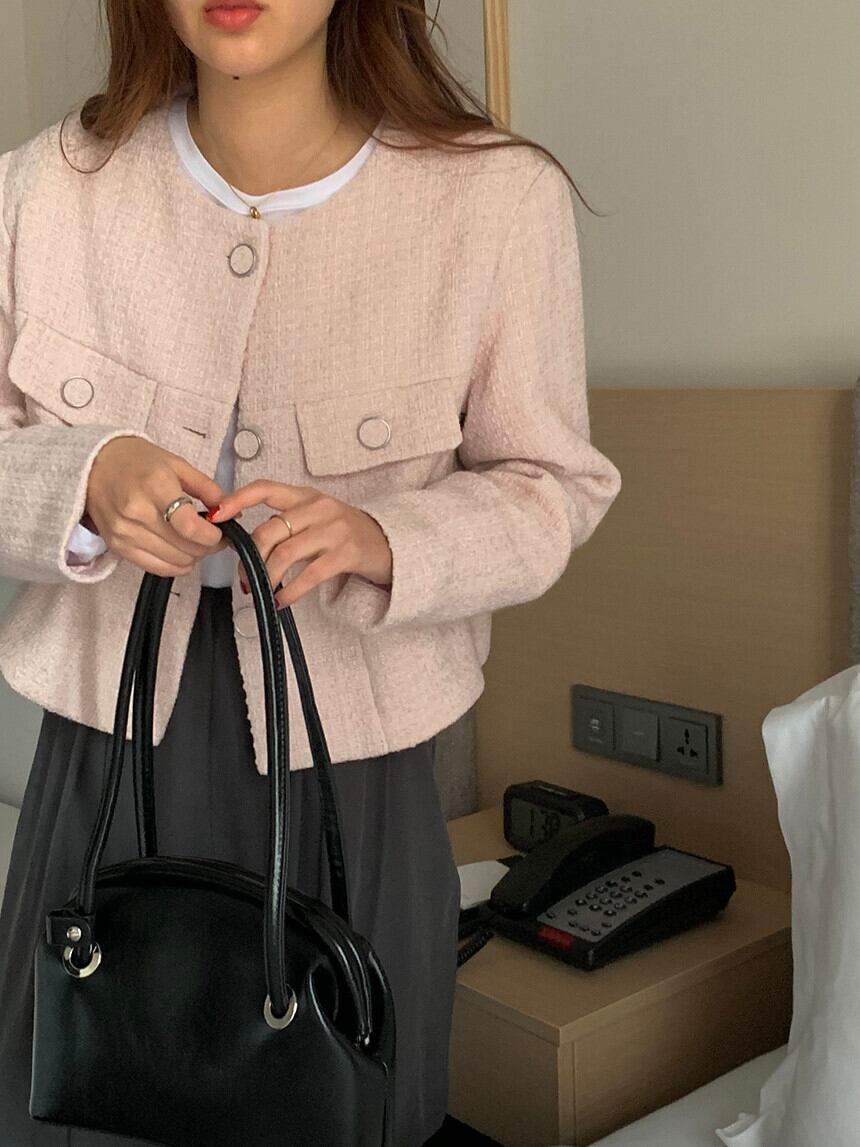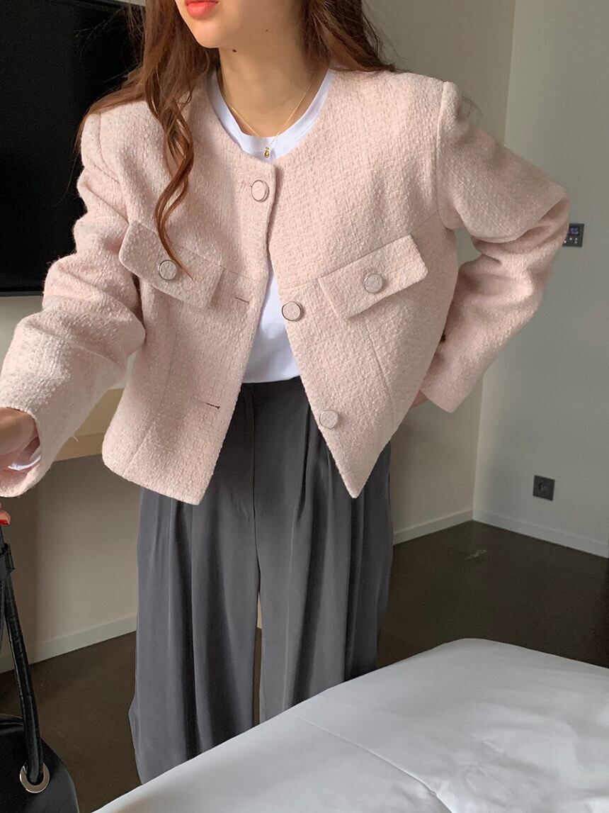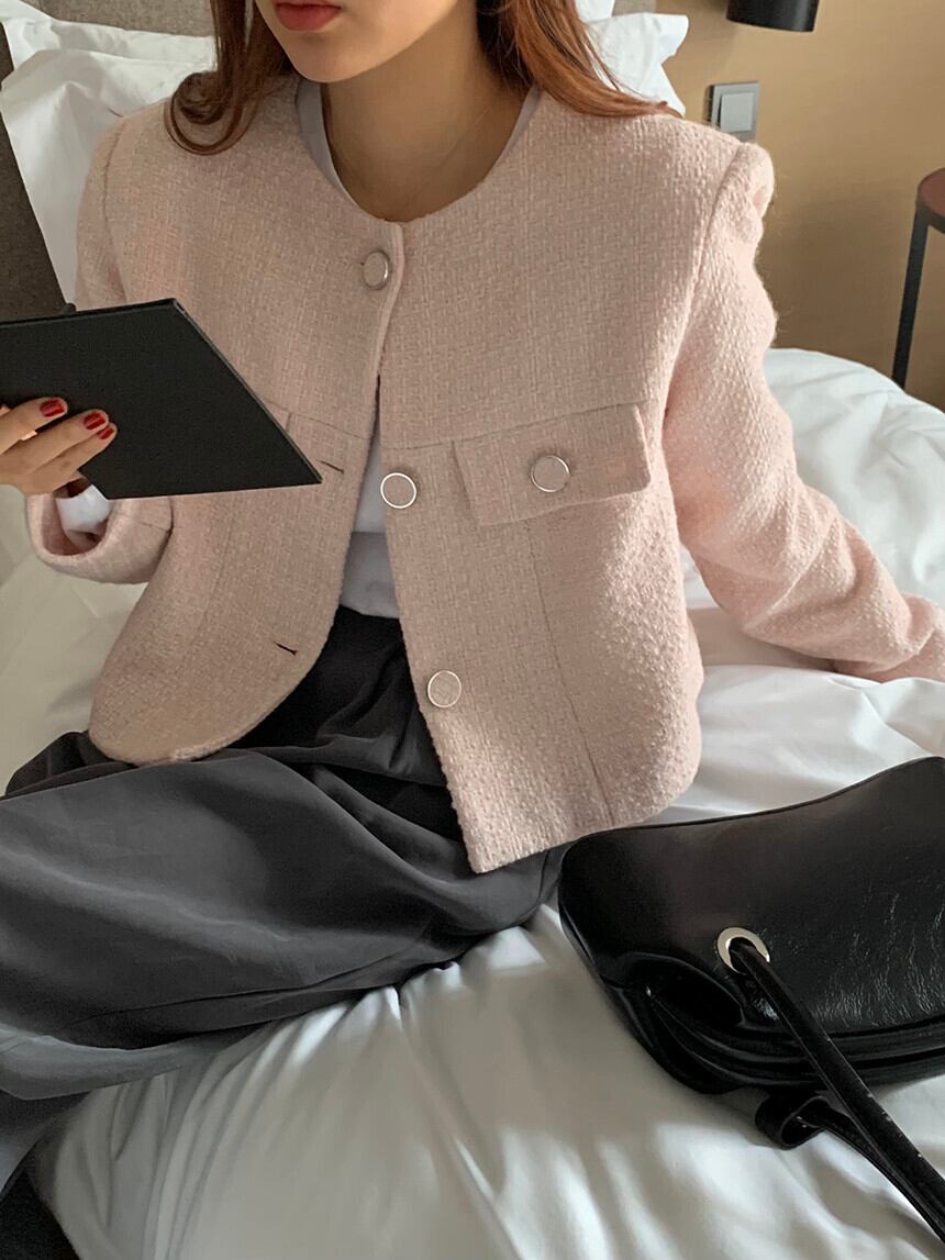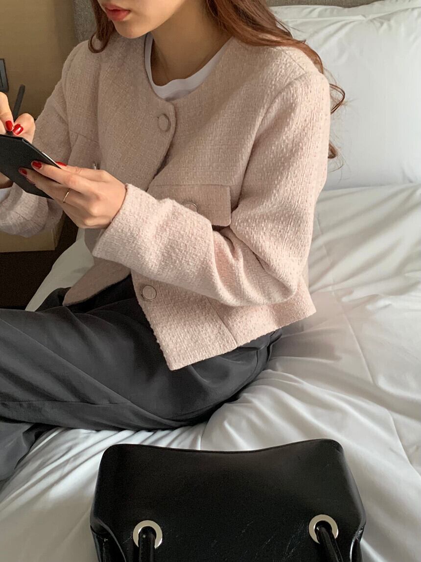 オータムスタイルラウンドネックポケットルーズツィードジャケット レディース ロング 秋物 Oネック 7/20 mi464266460249