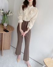 オータムラウンドネックサイドシャツ トップス レディース ロング レッド 秋物 Oネック ステッチ 7/20 mi4692220236815