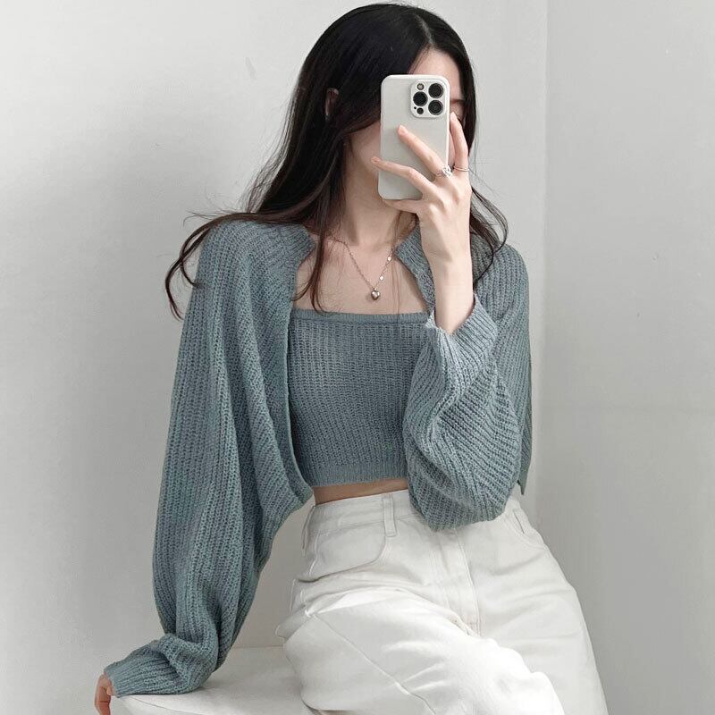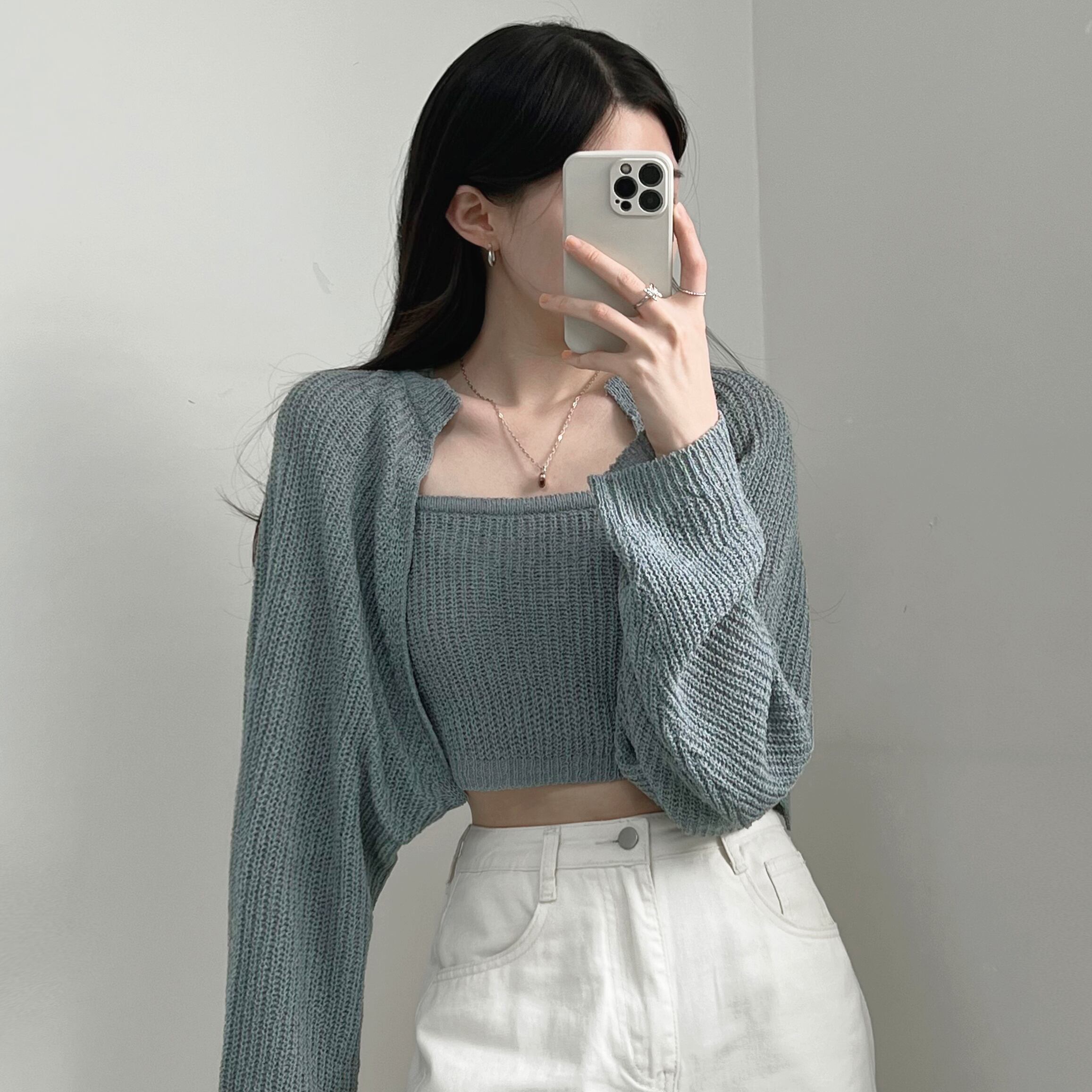 サマースリムショートルーズニットセーター ブラウス レディース ロング 夏物 7/20 mi4628755028281