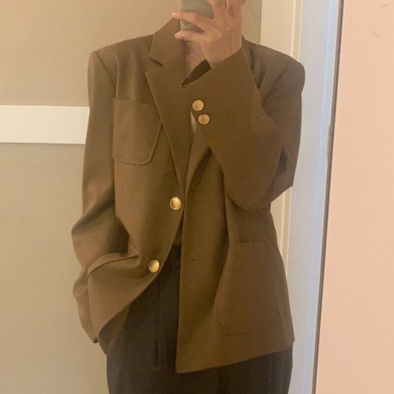 オータムスタンダードスタイルメタルルーズジャケット レディース ロング レトロ 秋物 7/20 mi4655536358795