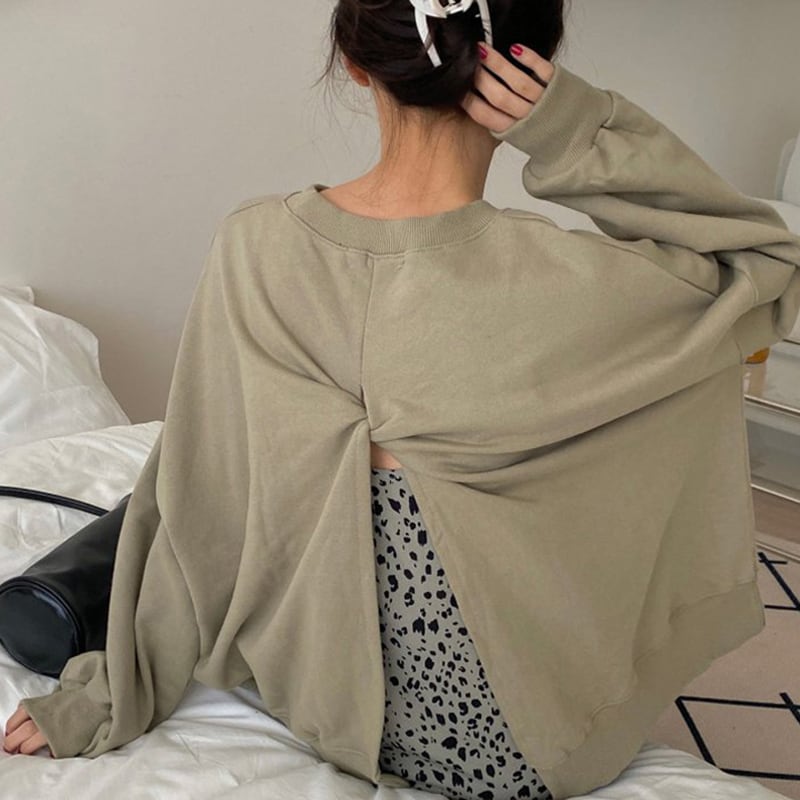オータムスタンダードラウンドネックバックルーズプルオーバー セーター レディース ロング レトロ 秋物 Oネック 7/20 mi4642586383067
