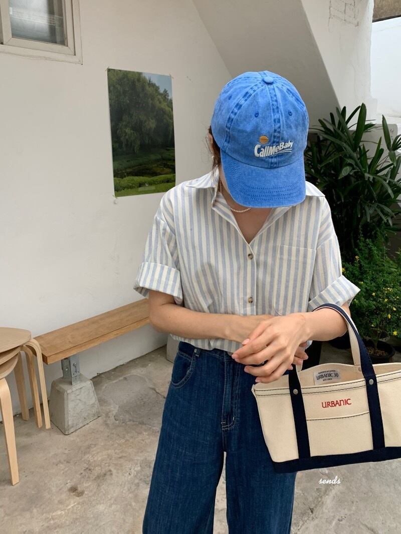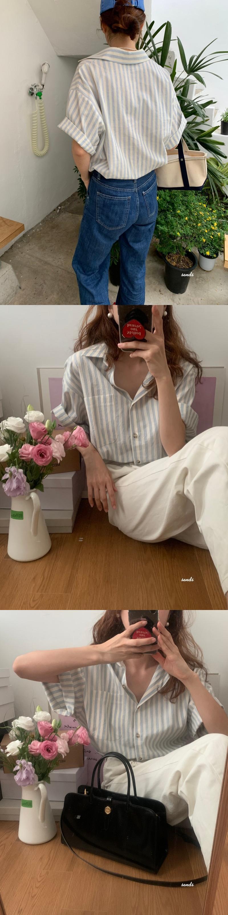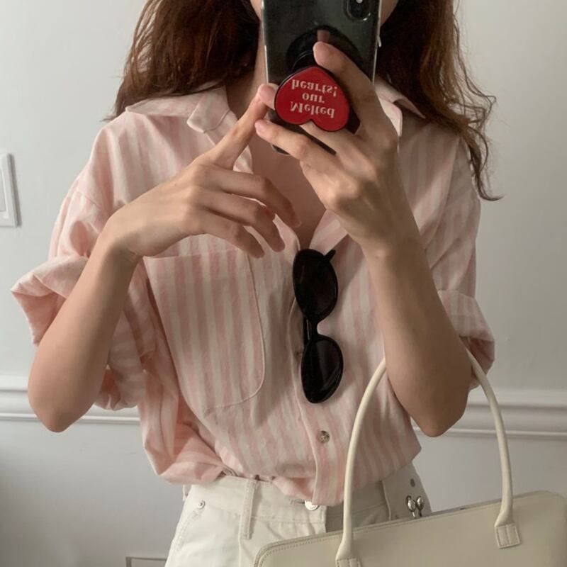 スタンダードスタイルストライプシャツ サマーカラールーズカジュアルトップス レトロ 夏物 7/20 mi4640193880123