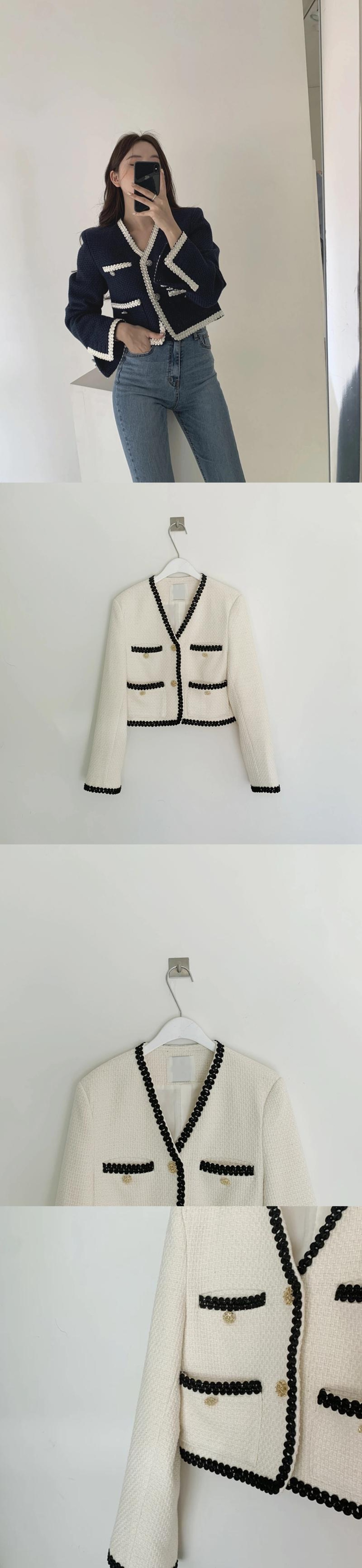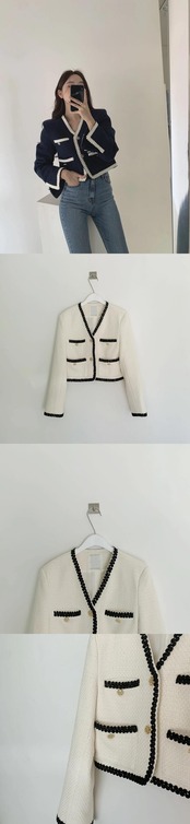 オータムイエローホワイトVネックカラーボタンポケットツィードショートコート 秋物 7/20 mi4616943683504