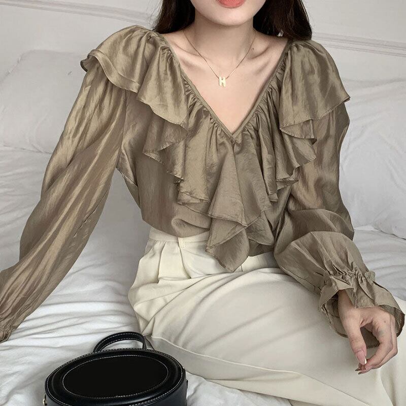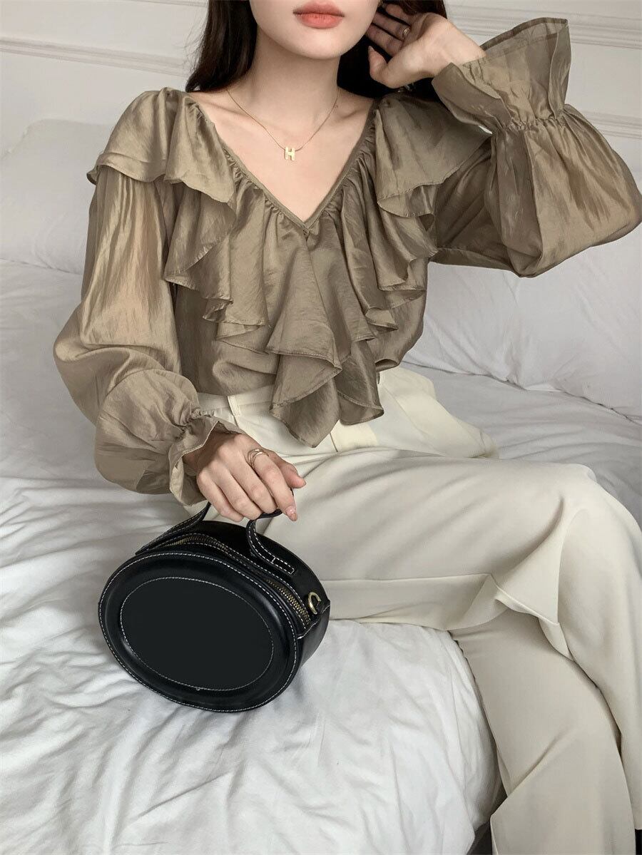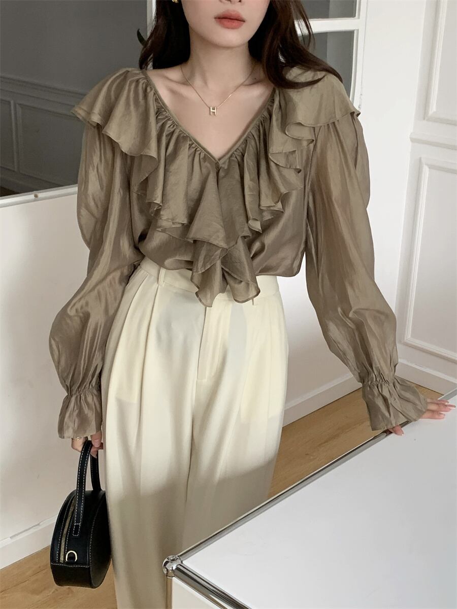 オータムVネックルーズシャツ レディース 秋物 7/20 mi4691056546349