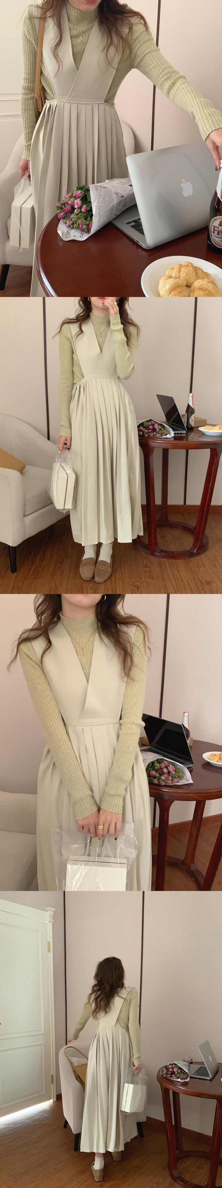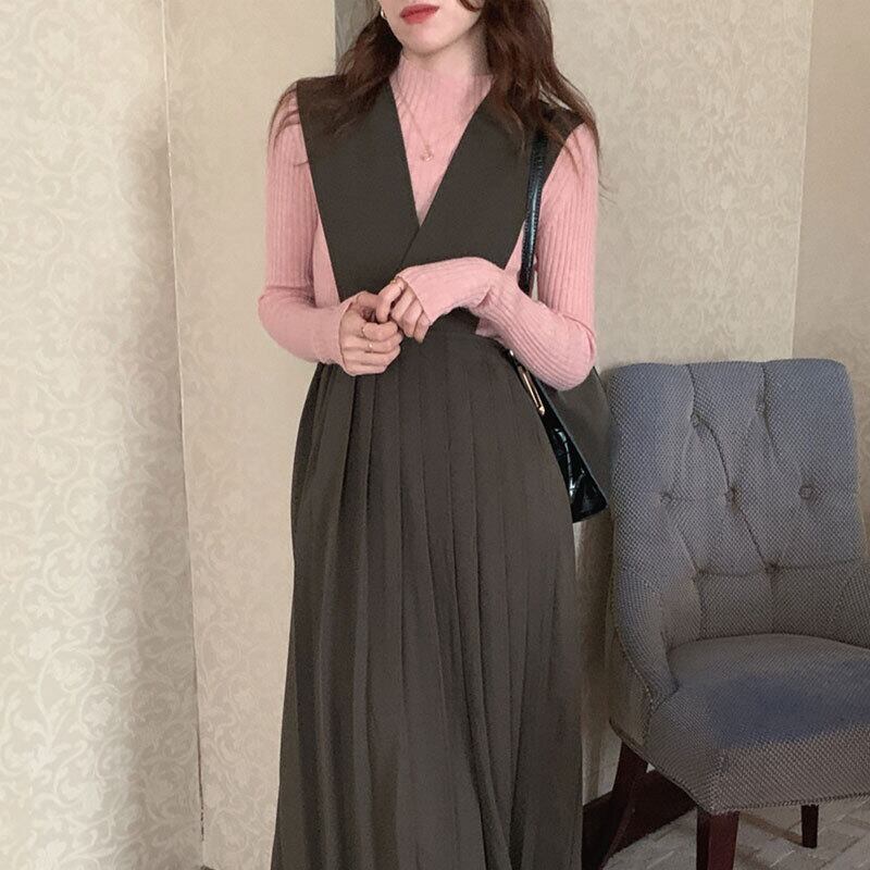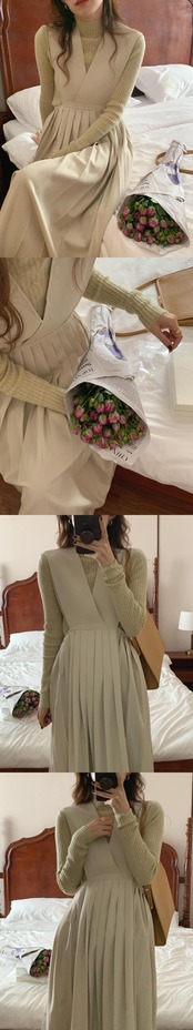 スリムニットセーター Vネックプリーツドレス レディース ロング 7/20 mi4664725124677