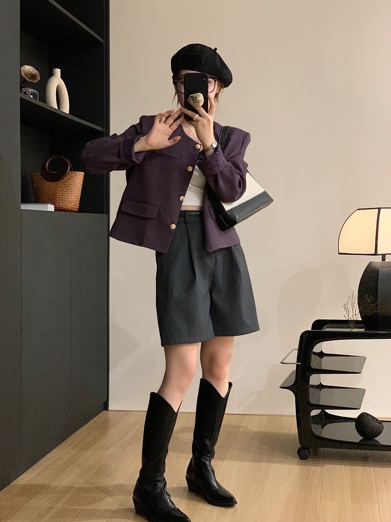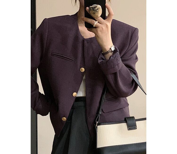 オータムスタンダードラウンドネックメタルルーズジャケット ロング レトロ 秋物 Oネック ポケット多め マルチポケット 7/20 mi4686152592831